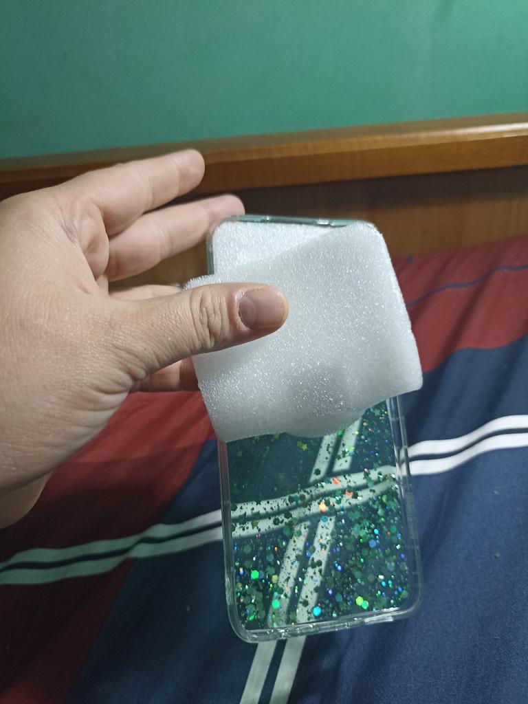 Obyčejné silikonové pouzdro. Flitry se nehýbou ☝️ Perfektně sedí.