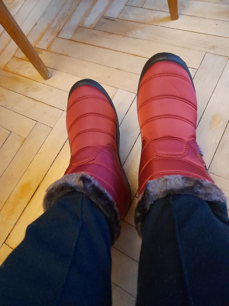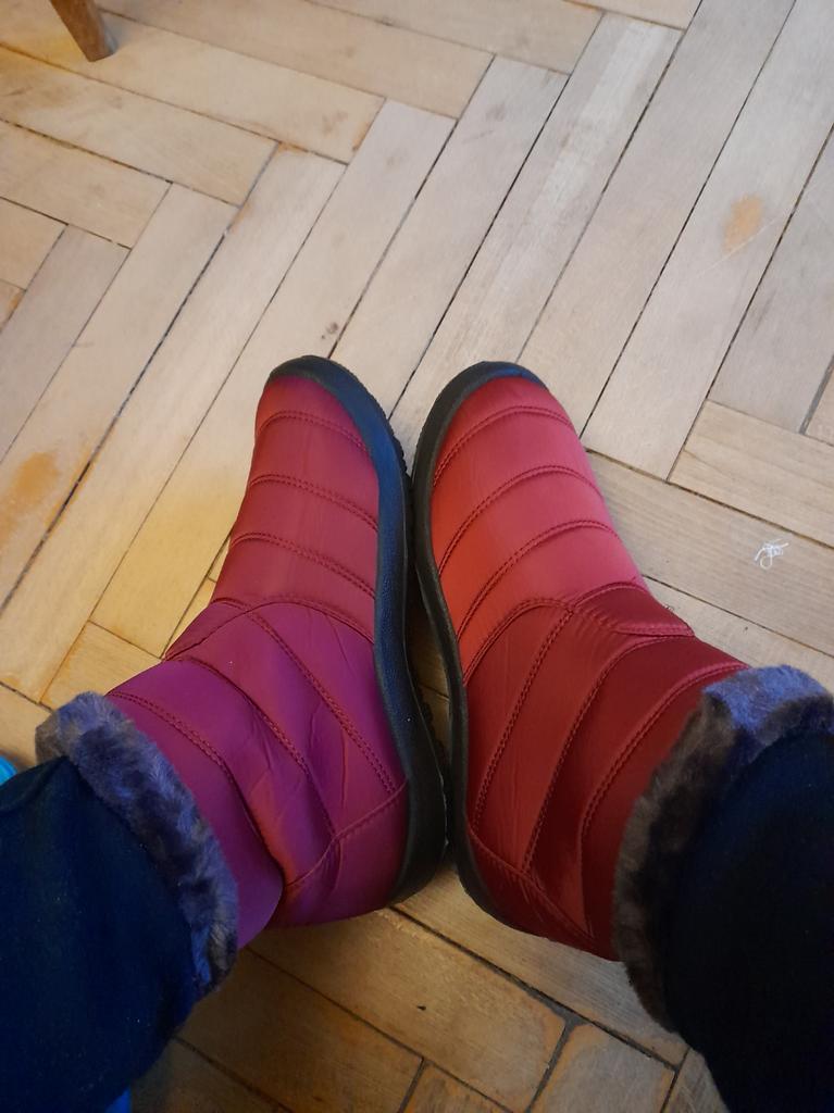 Boty jsou nevkusné, pro některé VELMI široké nohy! Nebo dvě vlněné ponožky. Jsem zklamaný, na fotce vypadaly úhledněji.