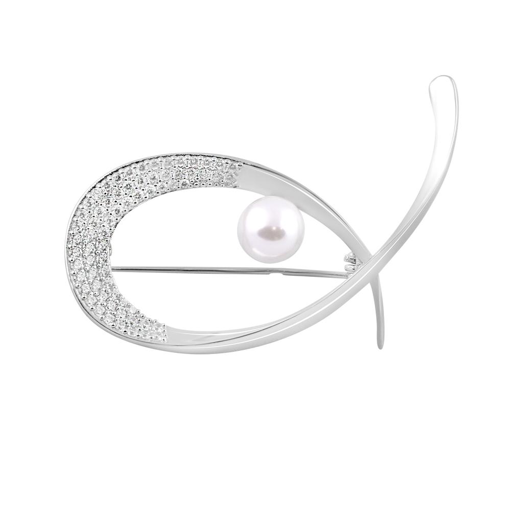stříbrná brož s přírodními perlami
