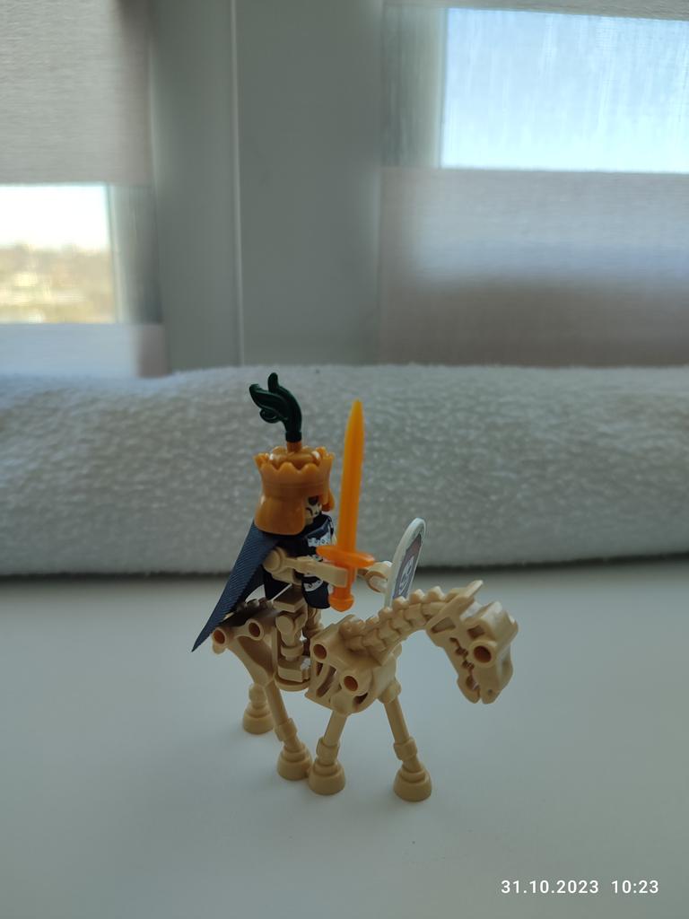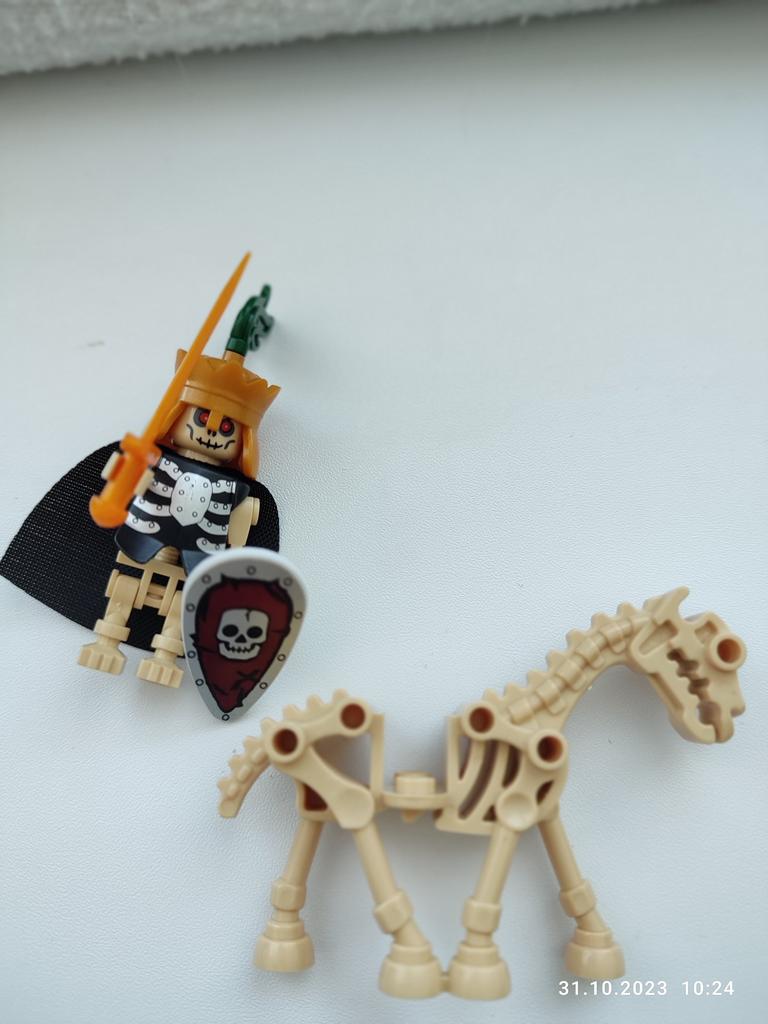 Halloween kostlivec rytíř postava stavební blok voják kůň montážní hračka