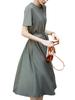 Bimba Women's Short Sleeve Linen Shift Dress With Belt Casual Dresses