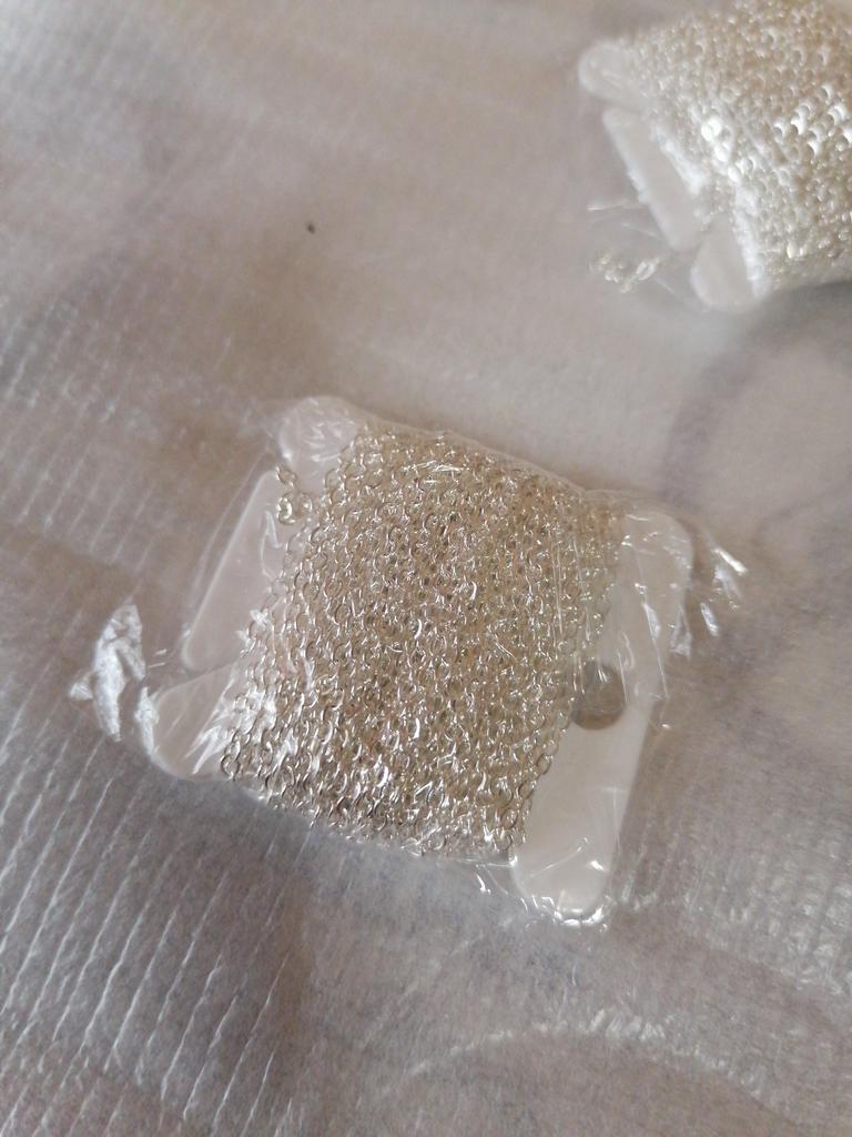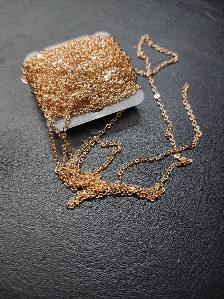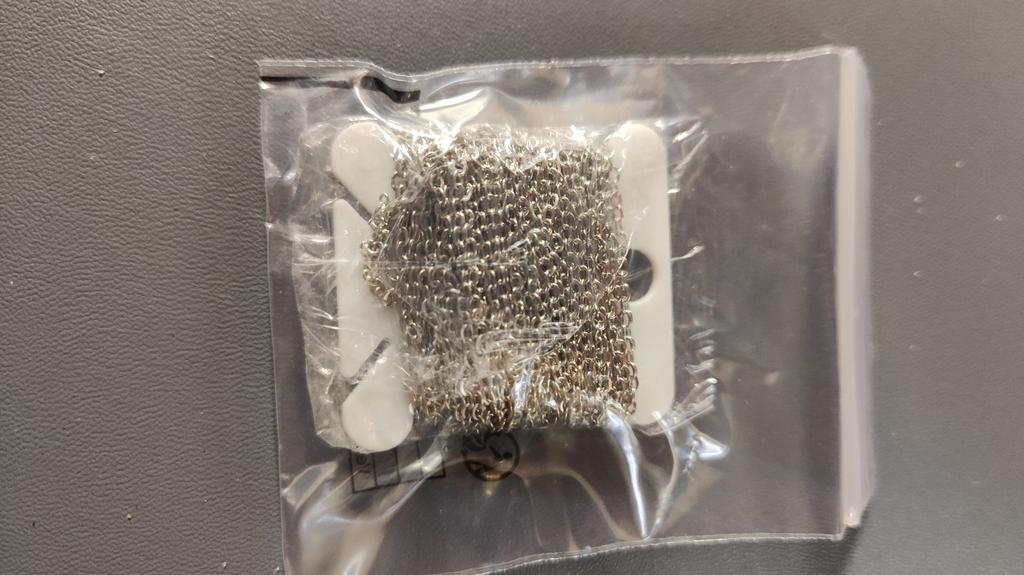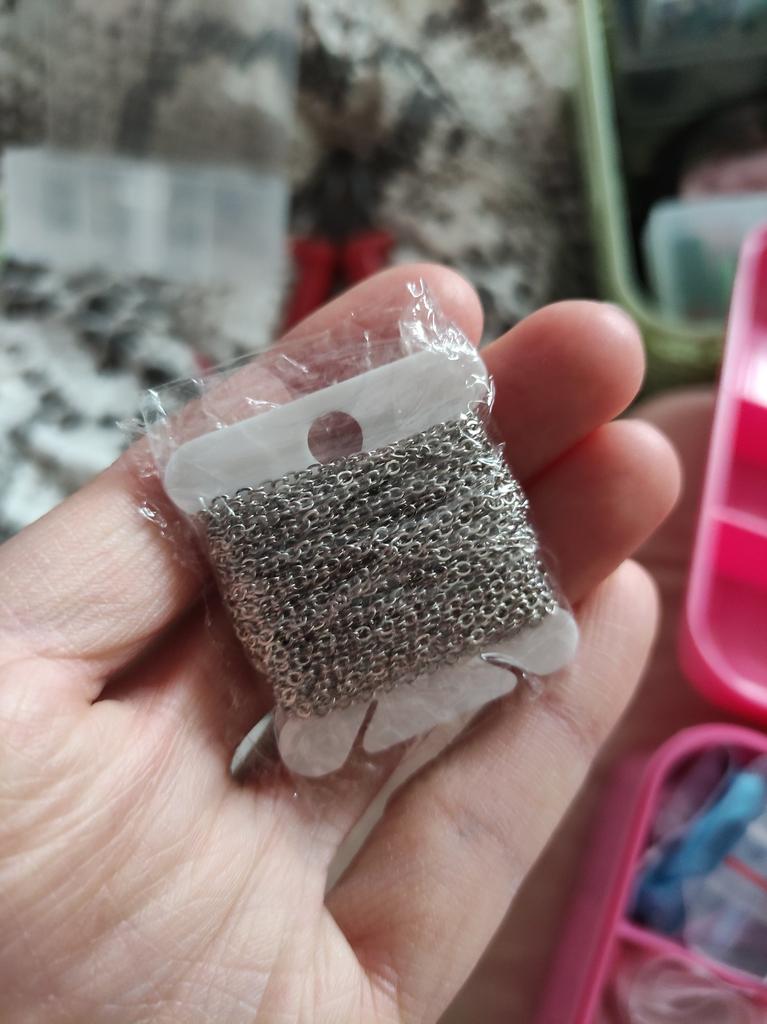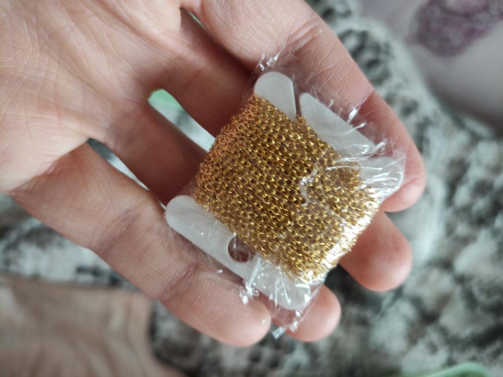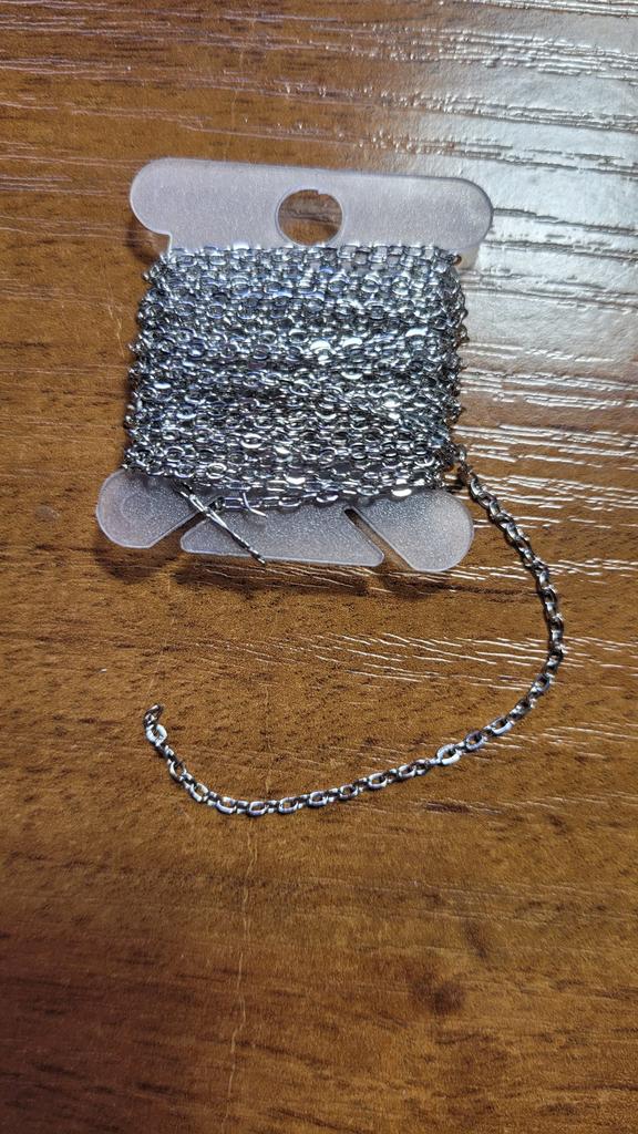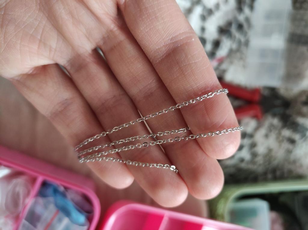Řetízek s malými články. Spojovací kroužky musí být velmi tenké. To je třeba vzít v úvahu při nákupu. Nehodí se na každou dekoraci. Lesk je jasný, příliš jasný i na můj vkus.