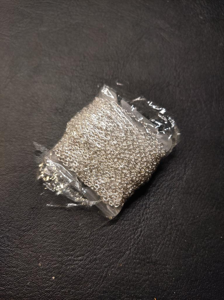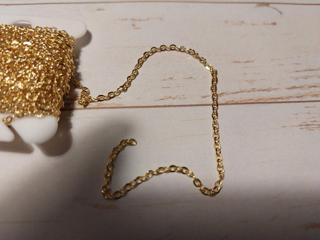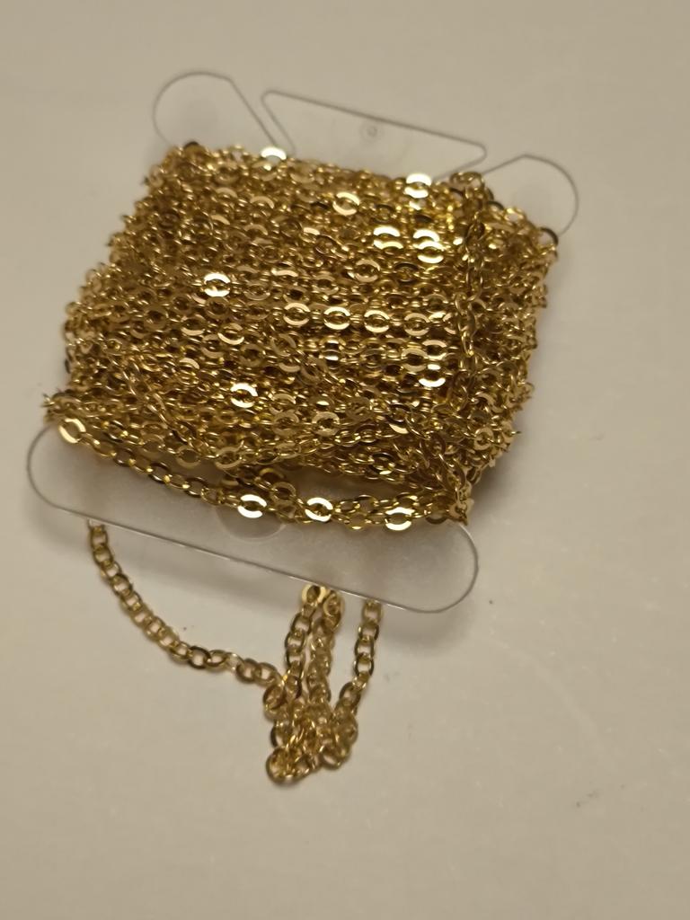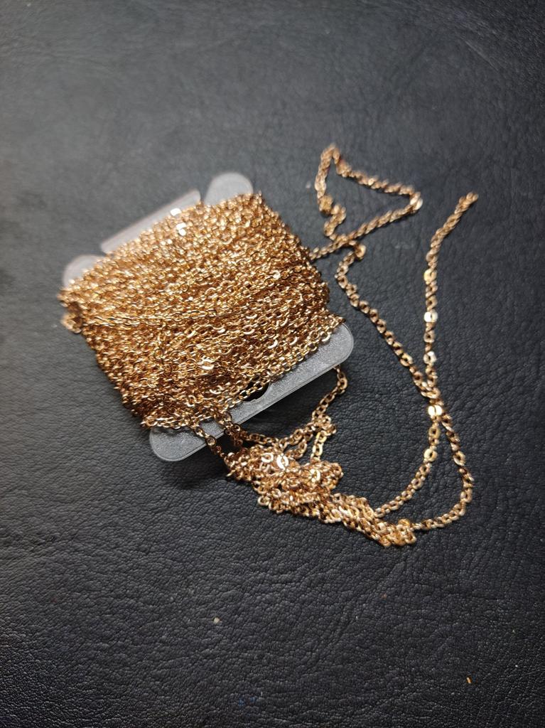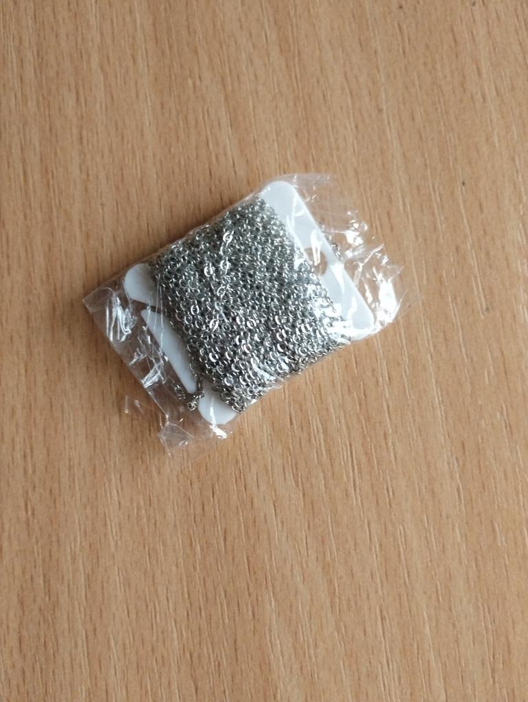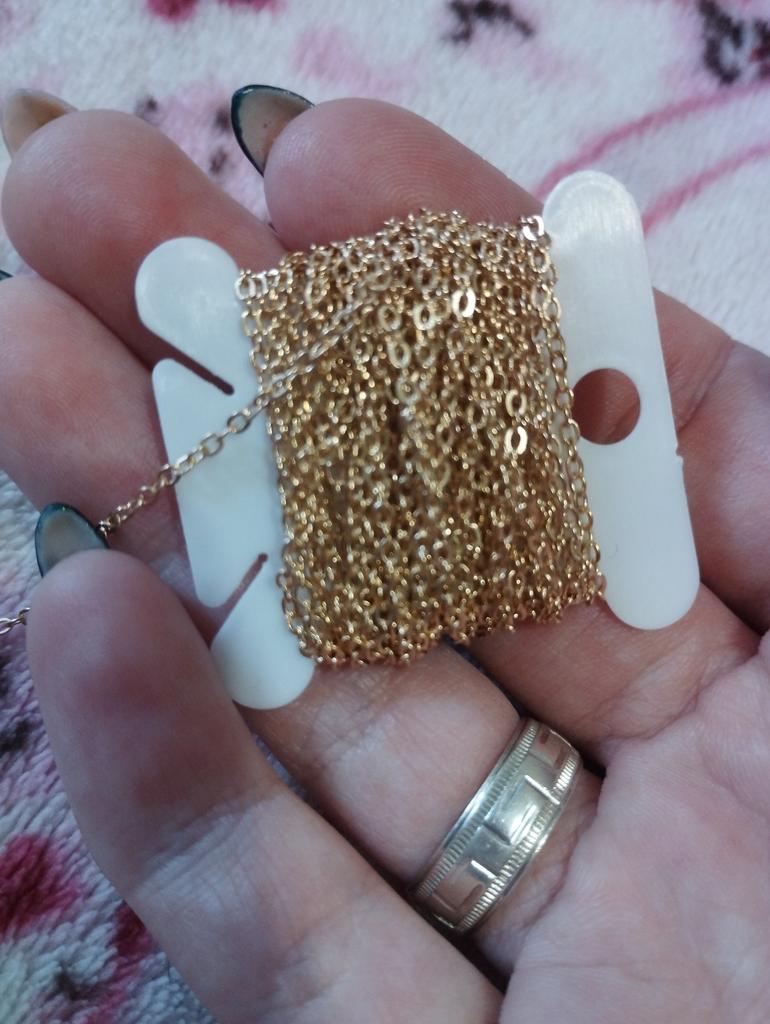 Řetízek s malými články. Spojovací kroužky musí být velmi tenké. To je třeba vzít v úvahu při nákupu. Nehodí se na každou dekoraci. Lesk je jasný, příliš jasný i na můj vkus.