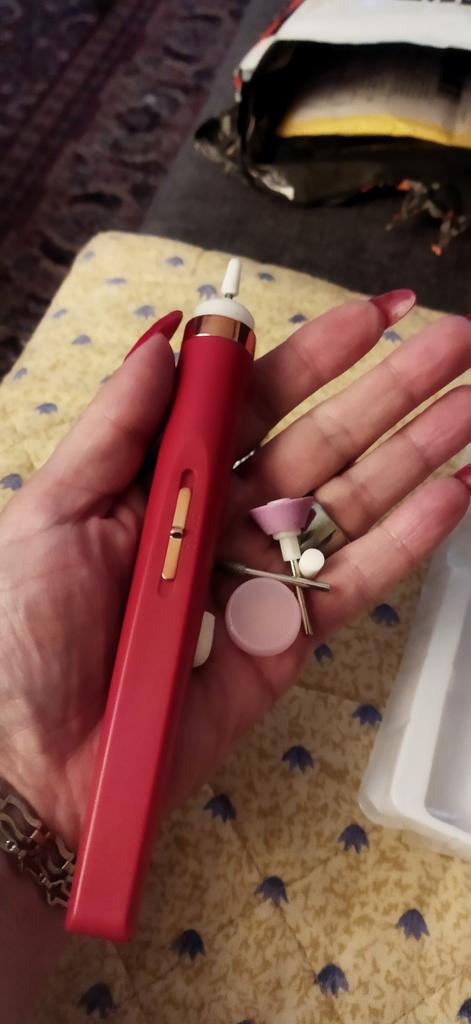 Nemá dostatek síly na pilování nehtu. Pokud vyvinete tlak, přestane se točit.