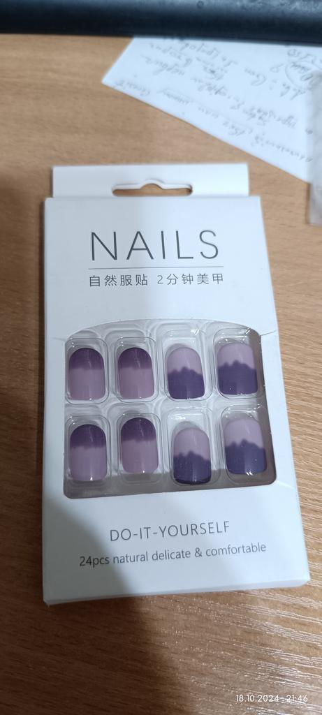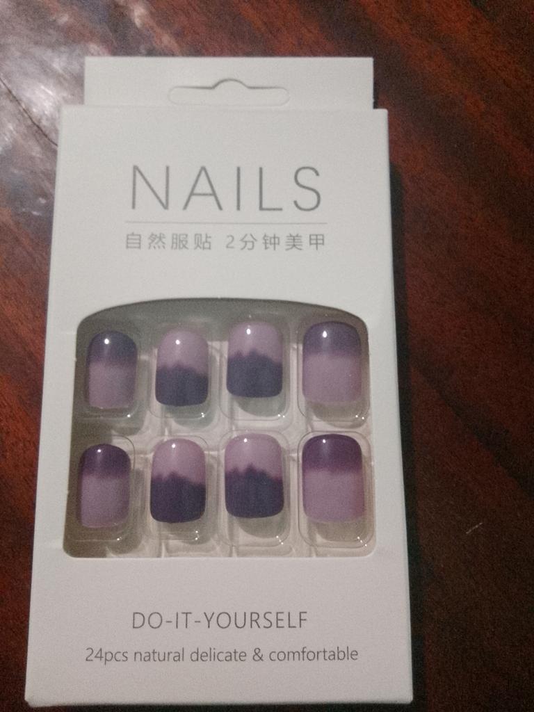 24 kusů Taro Purpurových kusů nehtů Nositelné falešné nehty Hotové samolepky na nehty Odnímatelné Krátký odstavec Jednoduchý dárek