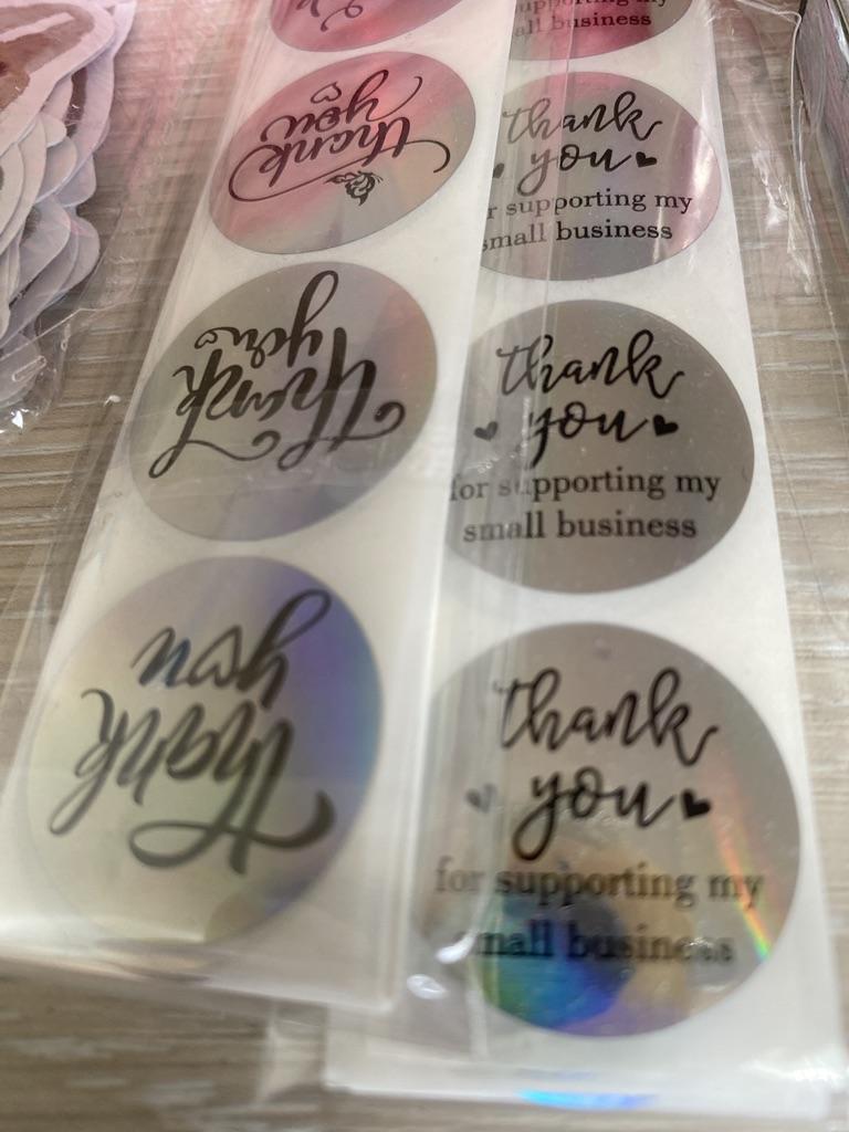 100-500pcs 1Inch Děkuji za podporu My Small Business Samolepky Duhové laserové samolepky pro staionery Balení Box Etikety