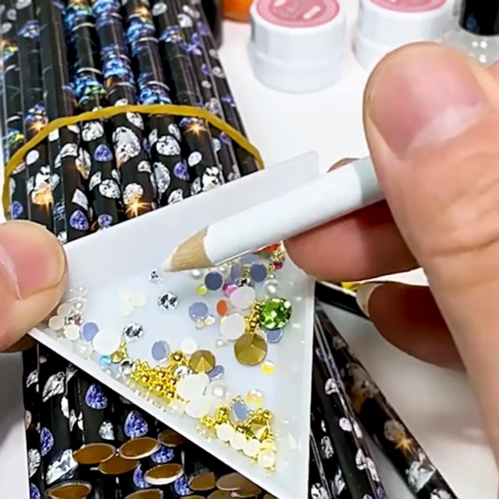 2ks Vosk na nehty Tečkovací tužky Kamínky Drahokamy tužky 10ks Trojúhelníkové plastové destičky Zásobník na drahokamy
