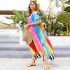 Bohémské pruhované bikiny zahalování ležérní volné letní šaty s výstřihem do V, polyesterová tunika plážové oblečení