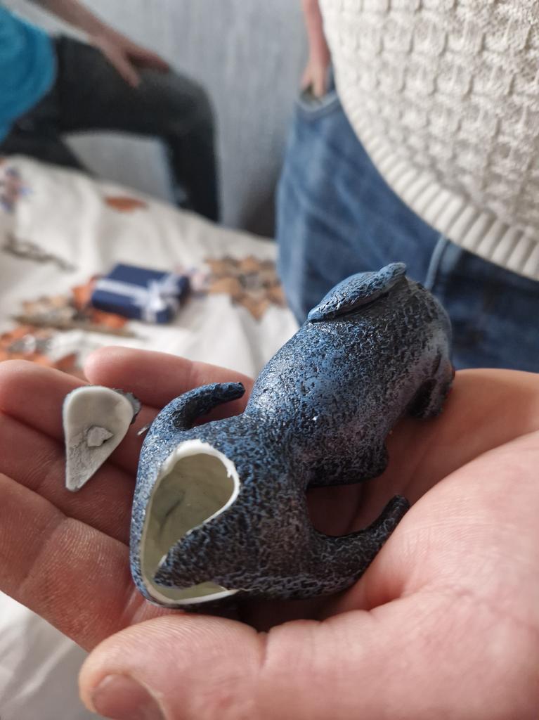 Nějak to stvoření vypadá v reálu mnohem ošklivější, ale dorazilo. Bohužel práce nebyla provedena správně a na chodidlech byly odštípnuté oblasti