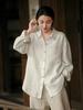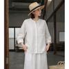 Johnature Japonské lněné dámské košile Jarní volné Jednobarevné Jednoduché Single Breasted All Match Women Tops