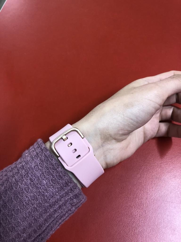Velmi dobrý náramek. Barva je růžová, pudrová. Perfektně sedí na hodinky