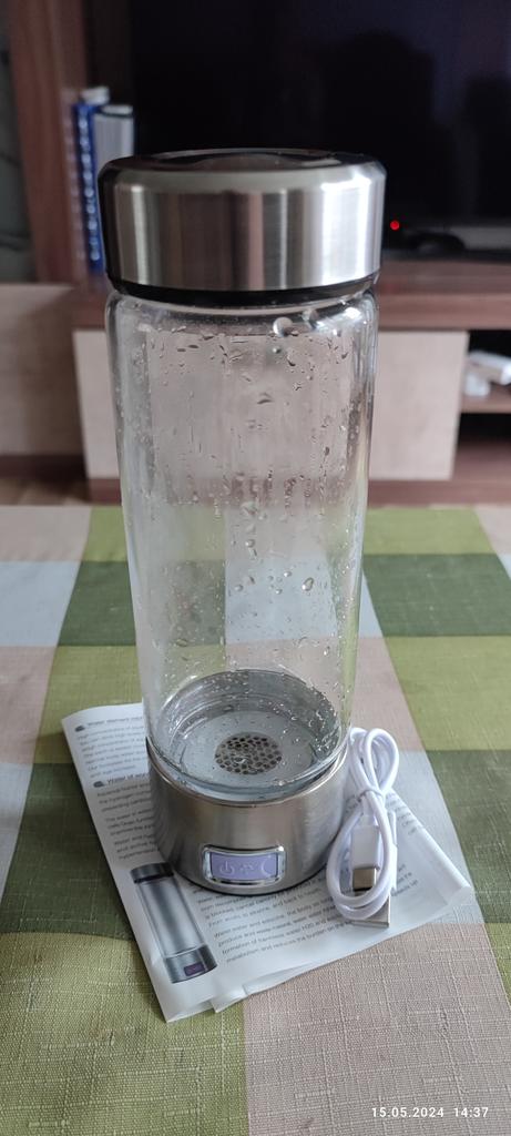 Když bylo stisknuto tlačítko pro výrobu vodíku, ozval se zvuk jako prasknutí a ze spodní strany přes vodu vycházely vzduchové bubliny. Když se zastavila výroba vodíku, voda se rozlévala ze spodní části nádoby. Vrátí produkt a požádá o vrácení peněz.