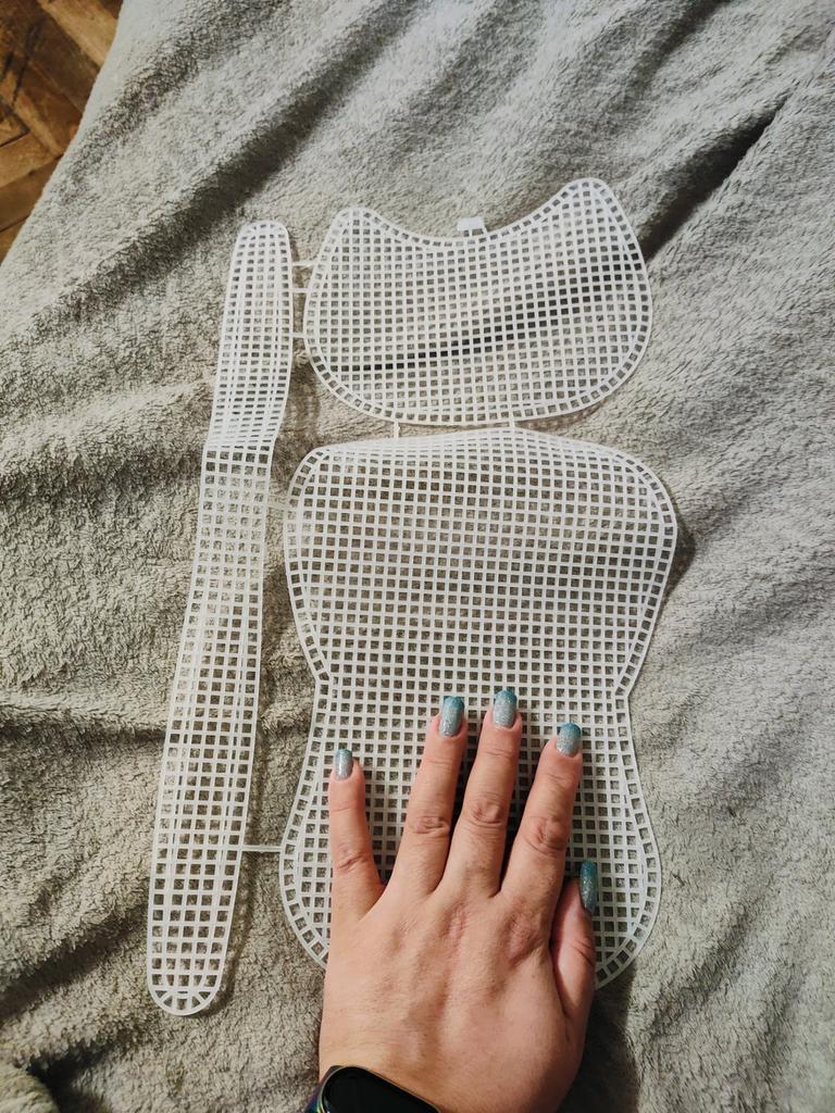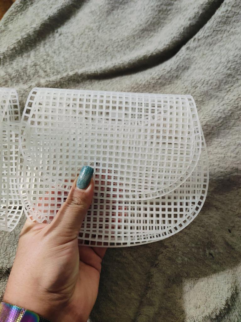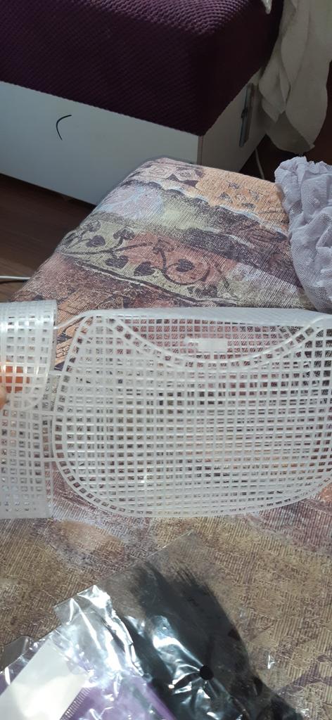 Malé plastové plátno, malého rozměru, předběžně obkreslím na karton, aby se dala přišít podšívka. Pokusím se recenzi doplnit