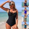 Dámské plavky nařasené jednodílné plavky se zavazováním vícebarevné sexy bikiny plavky