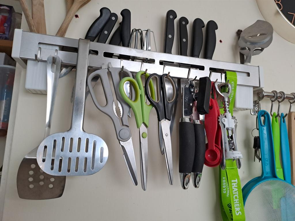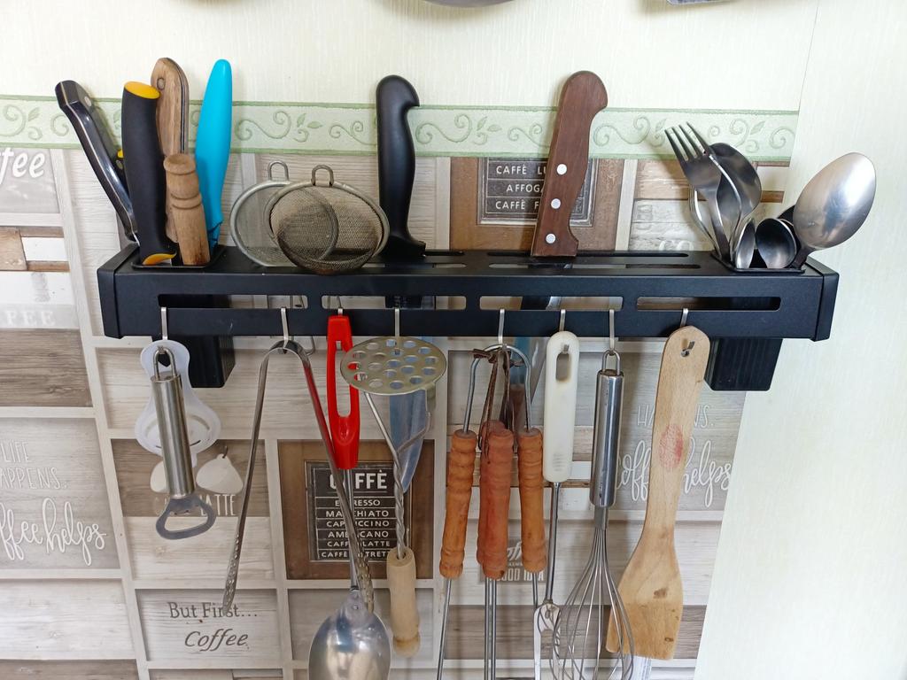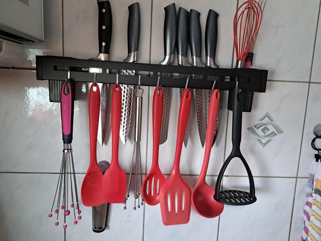 Opravdu pěkný, drží na zdi a vejde se do něj spousta kuchyňského nářadí. Miluji to