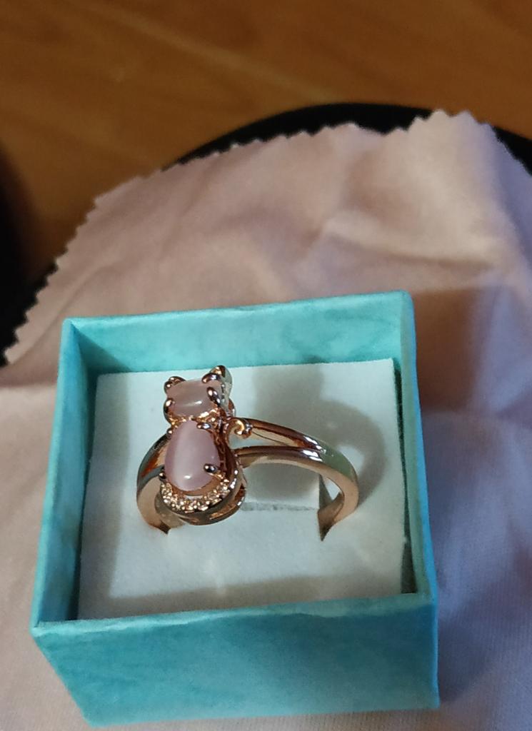 Ten prsten je naprosto úžasný!😻 Miluju koťátka a tahle krásná dětská růžová a růžové zlato jsou dvě z mých oblíbených barev!🥰💞 💞Toto je prsten velikosti osm. Sedí na můj prst, ale ne příliš těsně, protože nemám rád, když mi mačká prsty. 💞Je to velmi pohodlné! 💞Není nastavitelná. 💞Kamínkové detaily jsou krásné a bezchybné :) 💞Toto mi bylo doručeno asi za devět dní.