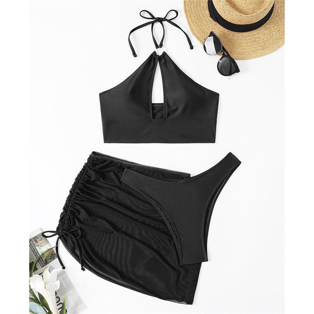 Sexy se sukní Podprsenka Vystřižená Halter Bikiny Dámské Plavky Dámské Plavky Třídílné Bikiny Souprava Koupání Plavky