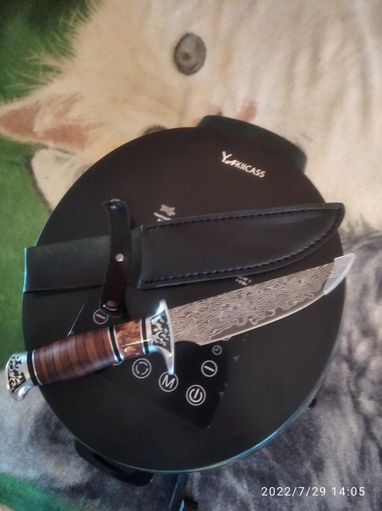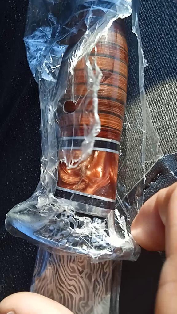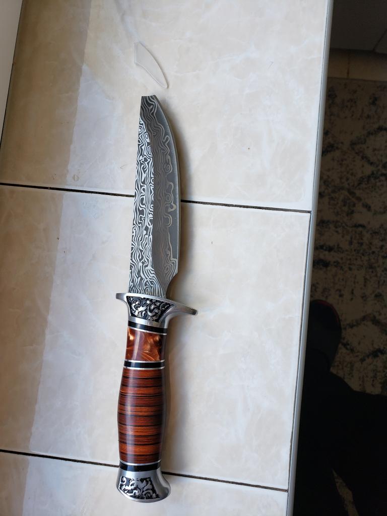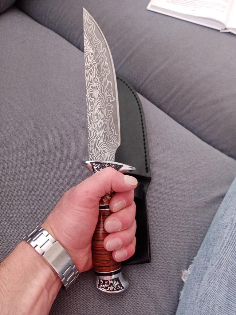 Nůž je masivní, ostrý, pohodlně padne do ruky a co se týče damaškové oceli, není z ní. Pravděpodobně jde jen o laserovou malbu. Nůž je v pořádku