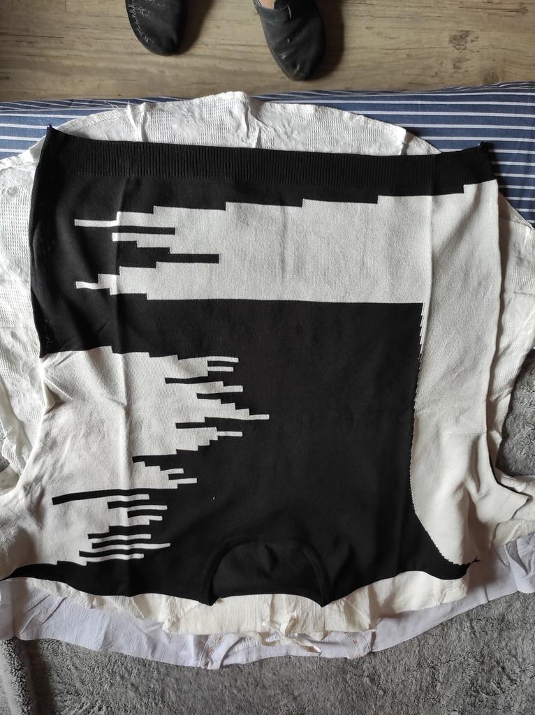 Kvalita zpracování je vidět na fotce. Halenka je z takové látky, že se po prvním nošení pravděpodobně rozpadne a pokud se nerozpadne po oblékání, praní určitě nevydrží (mlha není moc stabilní).