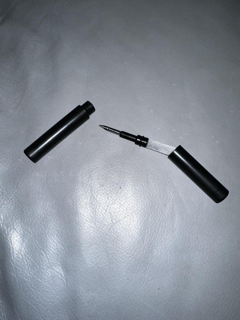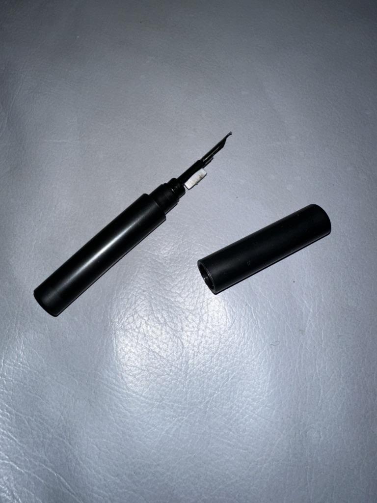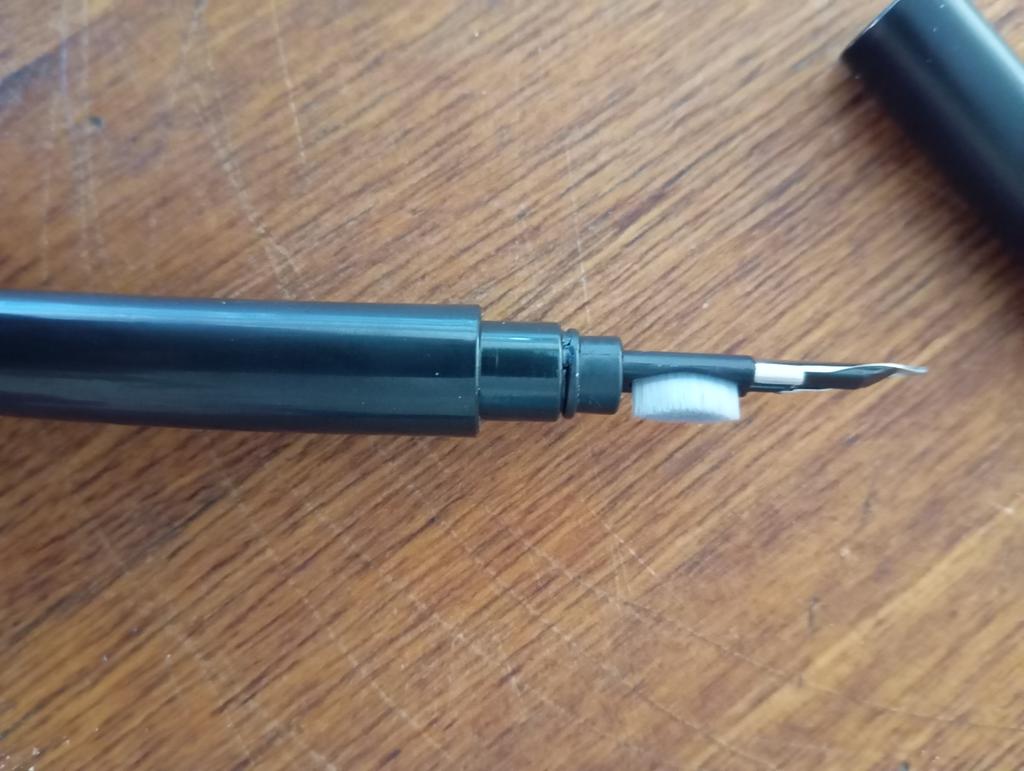 Skvělé za 1 £! Opravdu levný plast, ale kovový hrot působí dobře - podobně jako plnicí pero. Měla na mě nalepená nějaká podivná lepicí(?) věc, kterou jsem musel strhnout, ale nezpůsobilo to poškození. Funguje dobře na odstranění nevolnosti. Dimenzování: 10,5 cm Zavřeno 10 cm otevřená 6,5 cm základna/5 cm uzávěr Štětec 7,5 cm 🎧✒Doporučuji za levné!✒🎧
