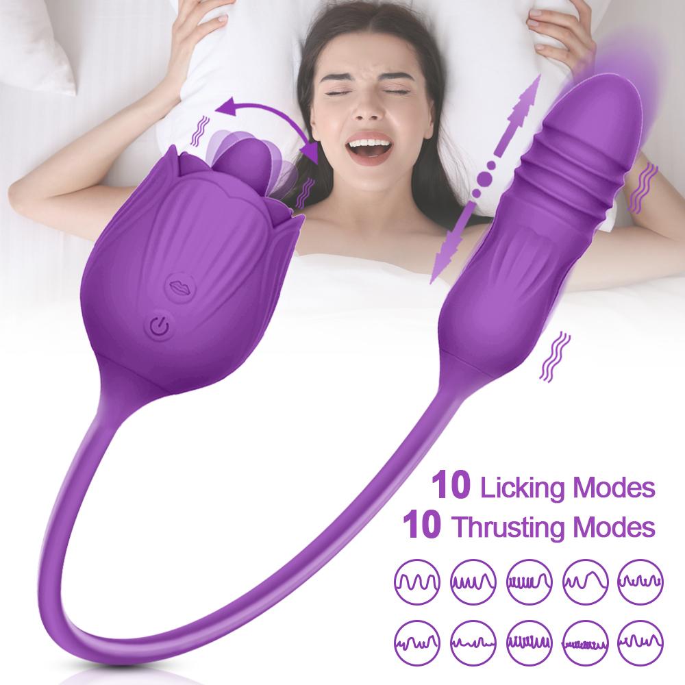 Protahovací vibrátor růže 3 v 1 pro ženy Stimulátor klitorisu bradavek Orální olizování jazyka Vibrační Love Egg Sexuální hračka pro dospělé 18