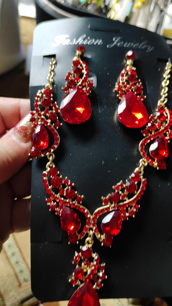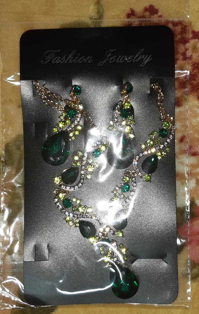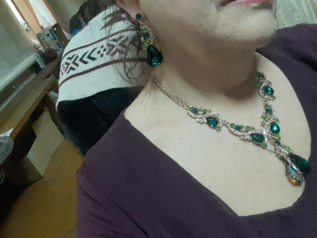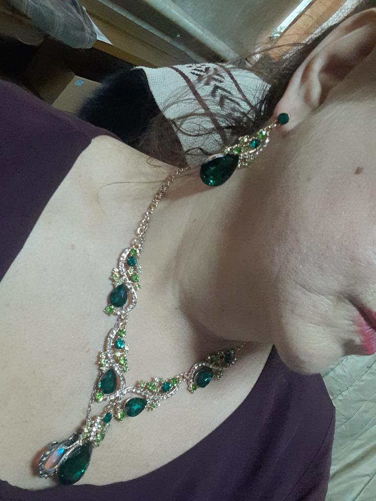 Tak neuvěřitelně krásné s několika zelenými šperky, na Vánoce červené sametové šaty se všemi šperky se zelenými kameny. Takže jsem s tím velmi spokojený