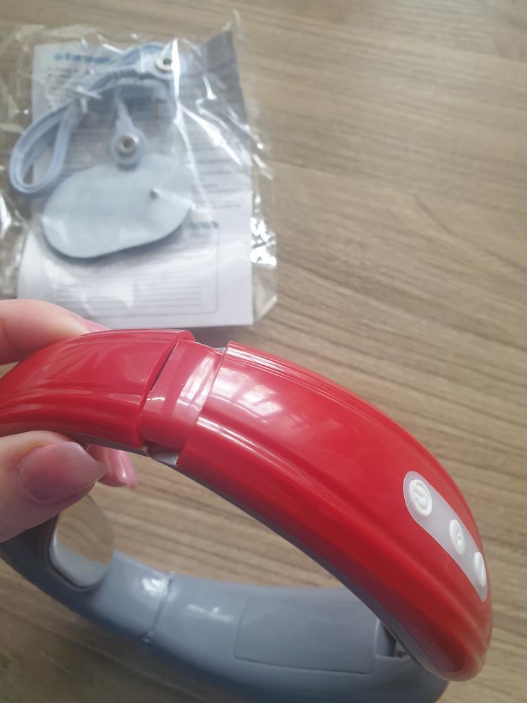 Chcete-li jej zapnout, musíte podržet tlačítko napájení po dobu 3 sekund. Zatímco funguje, dává vám elektrický šok, cítíte to jako vibrace. Ale pokud se ho dotknete rukou, cítíte proud. Uvolňuje svaly dobře. Na konci relace se automaticky vypne. Bez zápachu. mínus: velmi tenký plast