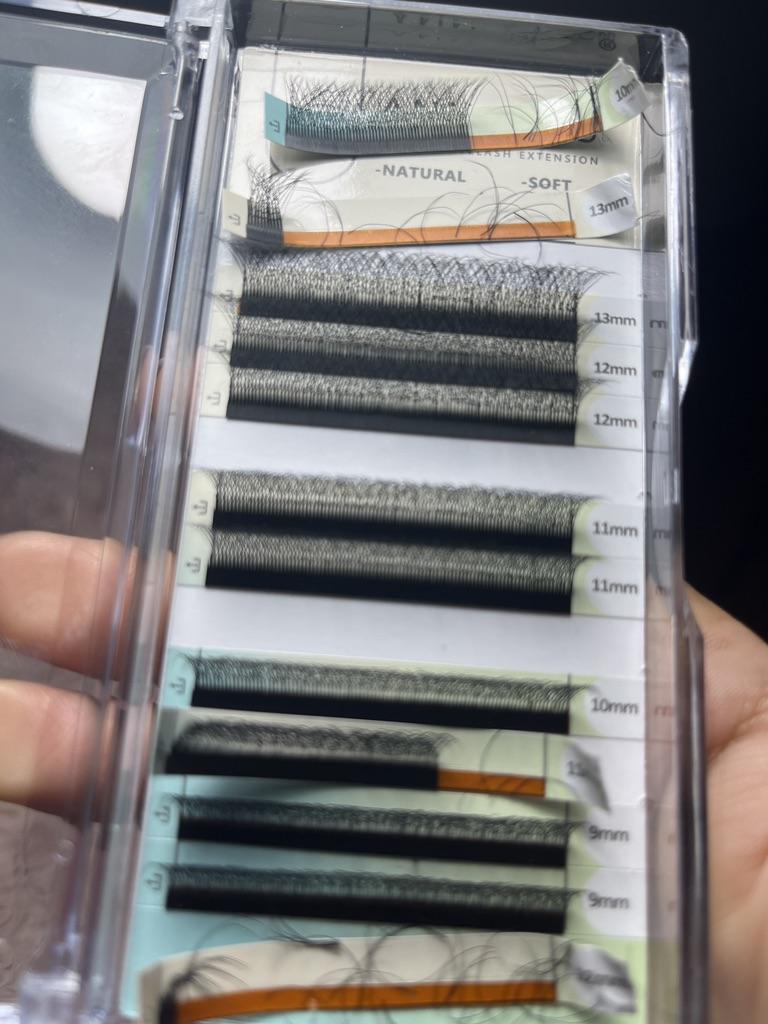 Jemné prodloužení řas Značka: ANNAFRIS 🌟🌟🌟🌟🌟 I tento vypadá velmi přirozeně. Jsou velmi měkké. Tato značka získává materiál z Koreje. Mají tvar W. Vybrala jsem si smíšenou délku 9-13, ale existuje tolik možností délky. Můžete také zvolit stejnou délku pro všech 12 řad. Existuje 12 řad a jedna řada může být použita pro obě oči. Líbí se mi i plastová krabička. Mohou být znovu použity. Pokud se zajímáte o prodlužování řas, doporučuji se podívat do tohoto obchodu, je tam tolik užitečných nástrojů na řasy spolu s velmi zajímavými řasami včetně ilustrovaných řas. Mohlo by to být velmi zajímavé mít na Halloween 🎃 nebo noční kluby 🌃🪩👯♀️