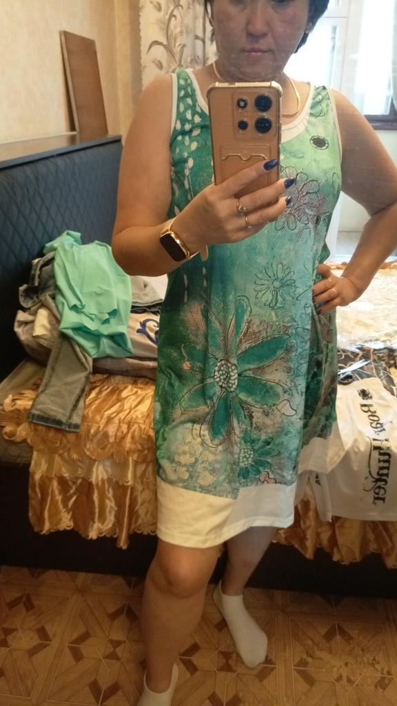 Předpokládám, že za ty peníze si nemůžu stěžovat, materiál je jako strečový nylon/polyester (ne moc kvalitní), ale velikost sedí a potisk na šatech je velmi podobný. Je nositelný.....jen. Budu to nosit, ale budu opatrný při objednávání oblečení na joom.