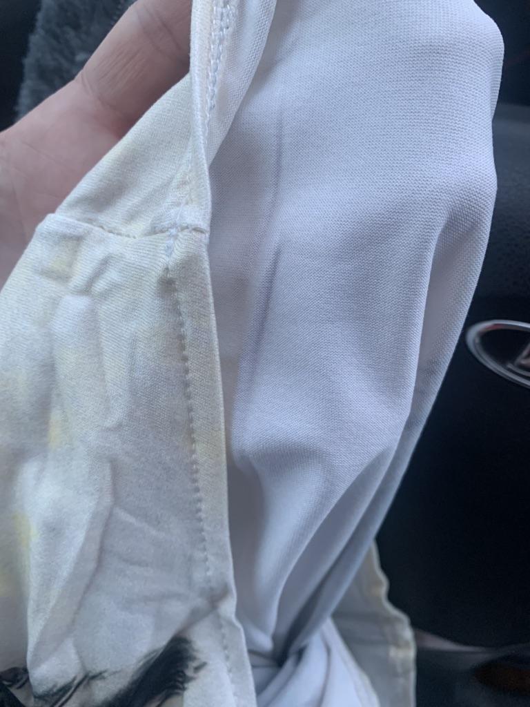 Krásné,jak je vyobrazeno a fototisk je super!Velikost M odpovídá 38 v EU,takže je jako my.Látka je velmi tenká,ale perfektně se přizpůsobí tělu a je vhodná na léto.Trochu lesklá a pružná, Jsem velmi spokojená, děkuji!