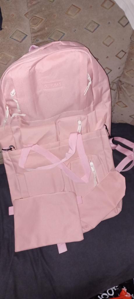 Trochu jiné než na fotce. Kvalita je horší, než to vypadá, ale na takovou cenu to ujde. Je to školní batoh a taška se dvěma penály, ale já je nosím do práce. Pro každodenní nošení to stačí, dokud se v procesu nic netrhá.