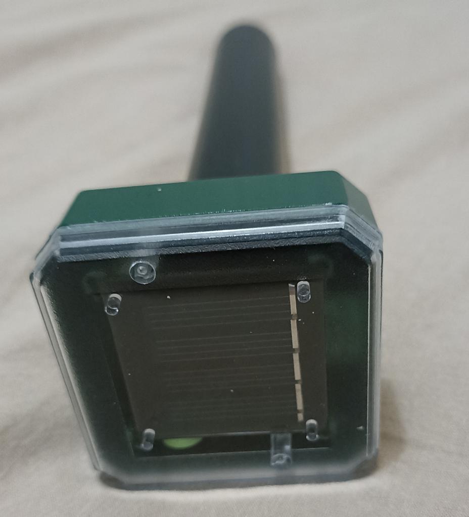 Nabité na slunci. Hlasitě píská. Doufám v účinnost zařízení. Děkuji. doporučuji. Funguje to! Vyhnal krtka z místa!