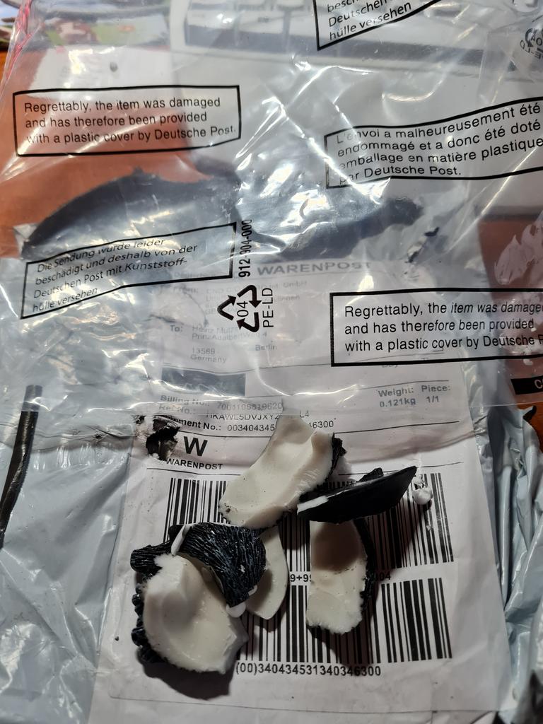 Zboží i obal zničené, poštou nikdy nezabalené