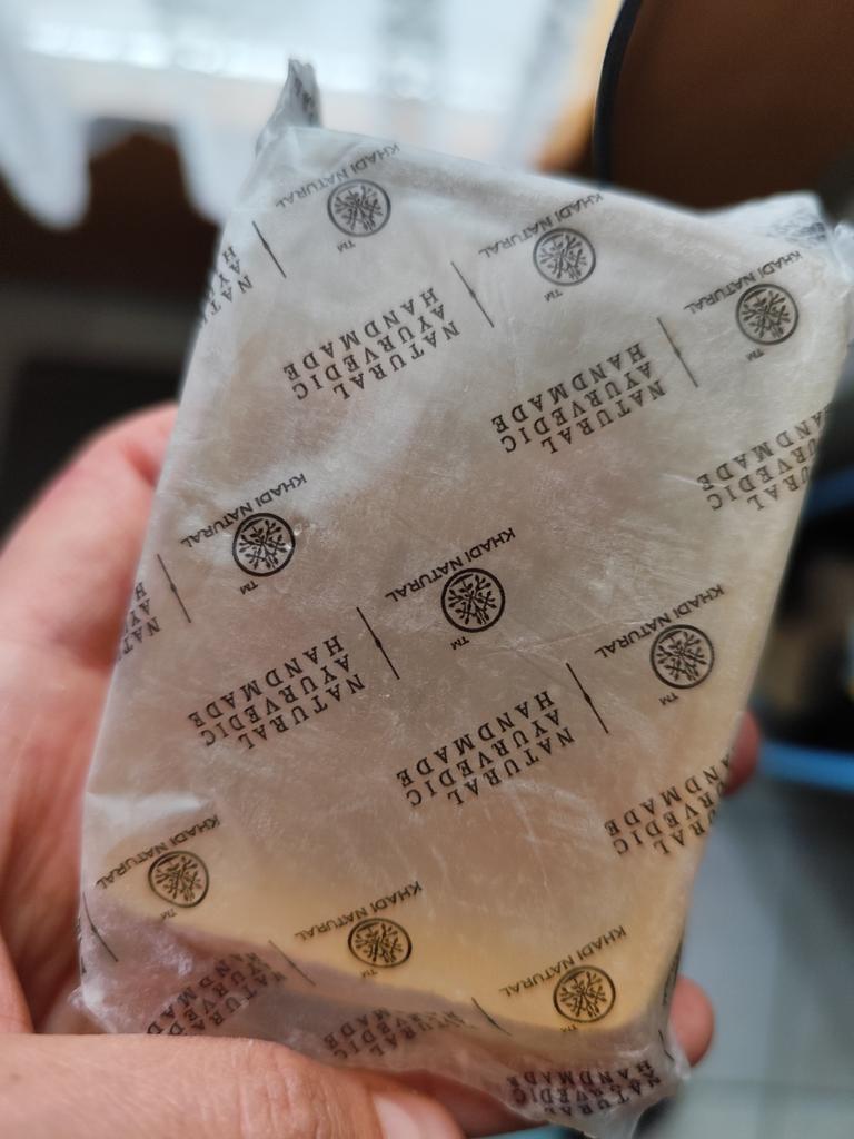 Nelíbí se mi, že toto mýdlo tentokrát přišlo bez řádného obalu a etikety. Nemohu vidět složení. Mohu jen doufat, že je to stejné mýdlo, které obvykle objednávám.