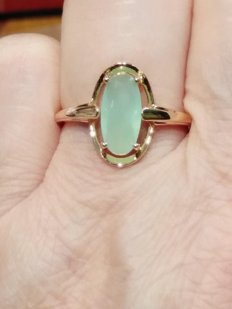 Kov "pod zlato", lehký, dobře vyleštěný, příjemný na dotek. Barva kamene je rovnoměrná, homogenní. Výrobek se mi líbí. Zboží přišlo ve sběrné zásilce.