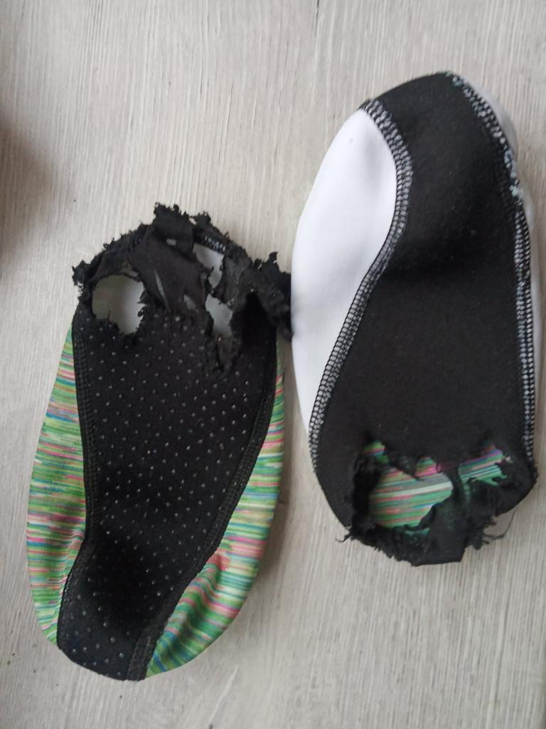Po prvním oblečení ve školce přineslo dítě tyto (plavecké ponožky) v tomto stavu, viz foto. Závěr: úplná K..O..B..I..L..A, peníze vyhozené oknem.
