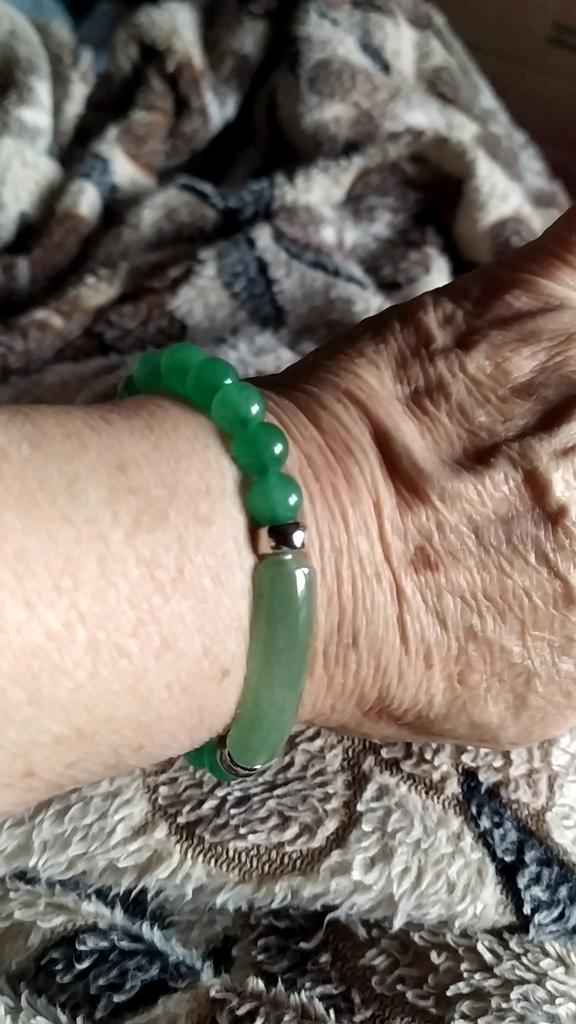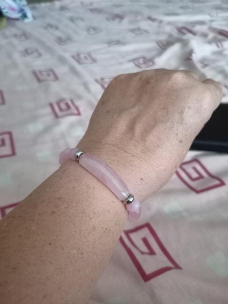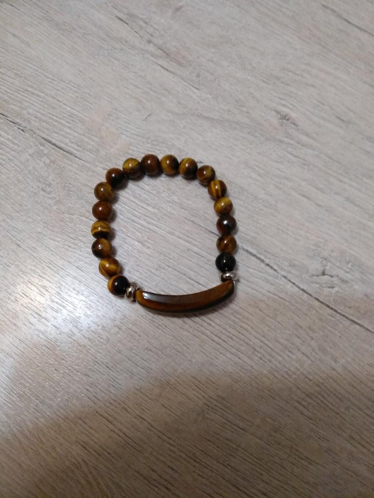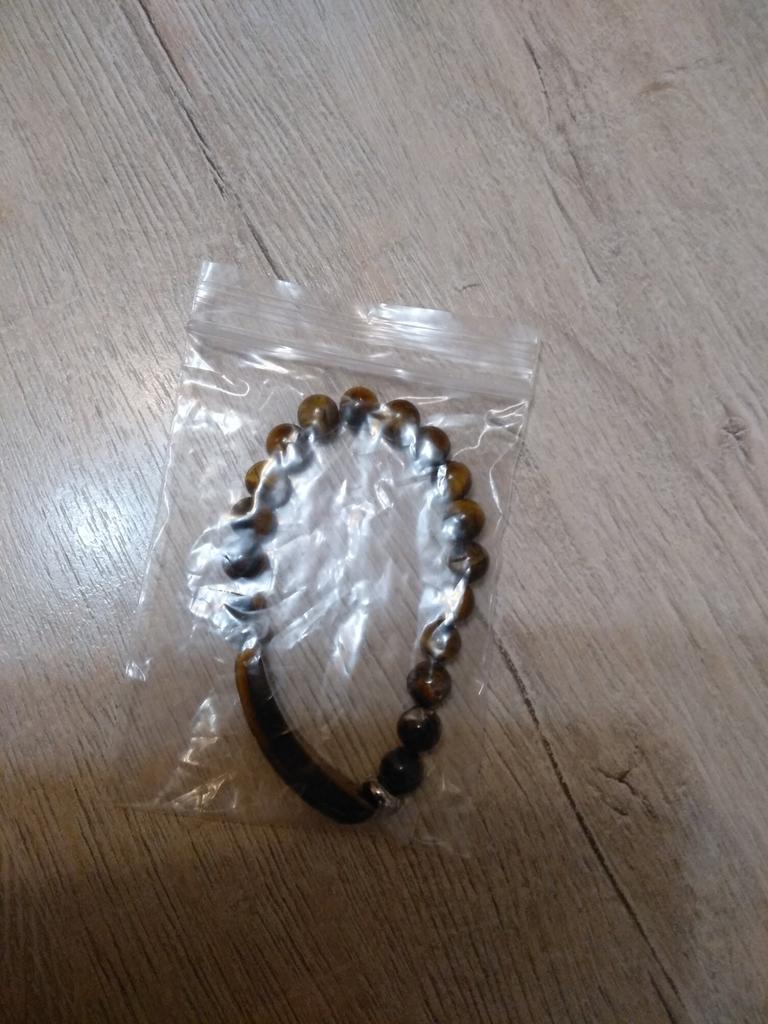 Tento náramek je dobrý, bez vad. Doporučuji, ale náramek se skládá ze 17 malých korálků o velikosti 0,6-0,7 cm a kamene dlouhého 3,5 cm, pro mou ruku je 16,5 cm tak akorát, ale bude plnější malý nebo na zadek.