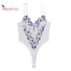 Dámské body Průhledná síťovina Patchwork Slim Sleep Colthes Fit Sexy oblečení Tenké Osvěžující Hubená Nízký střih Dámská kombinéza s květinovými výšivkami bez zad
