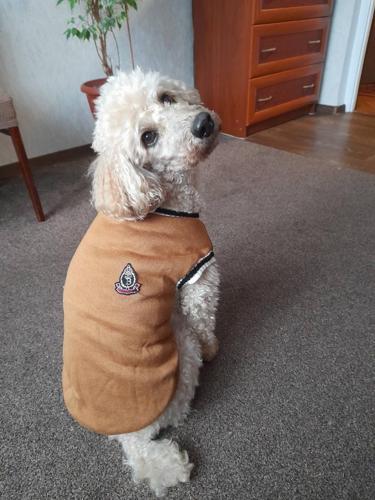 Svetr perfektně sedí na pudla, velikost hrudníku 58 cm. teplý M' který Příjemné na dotek.