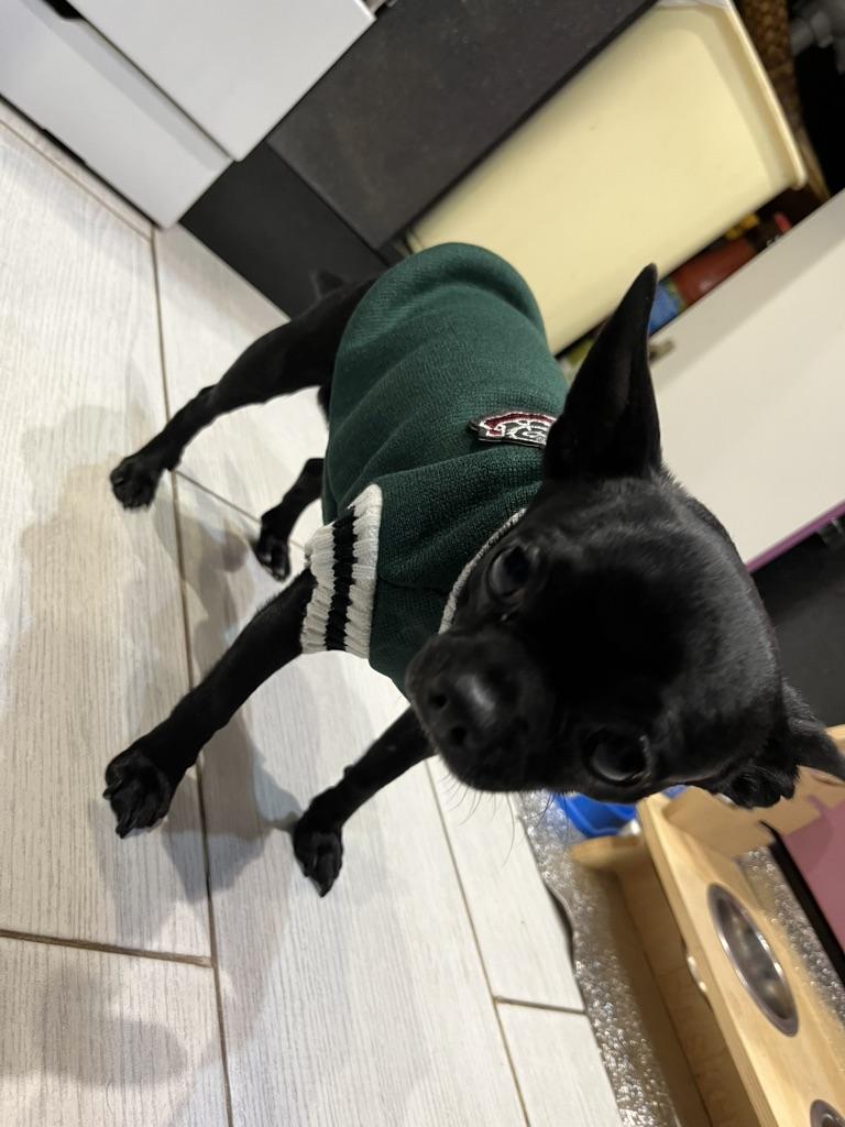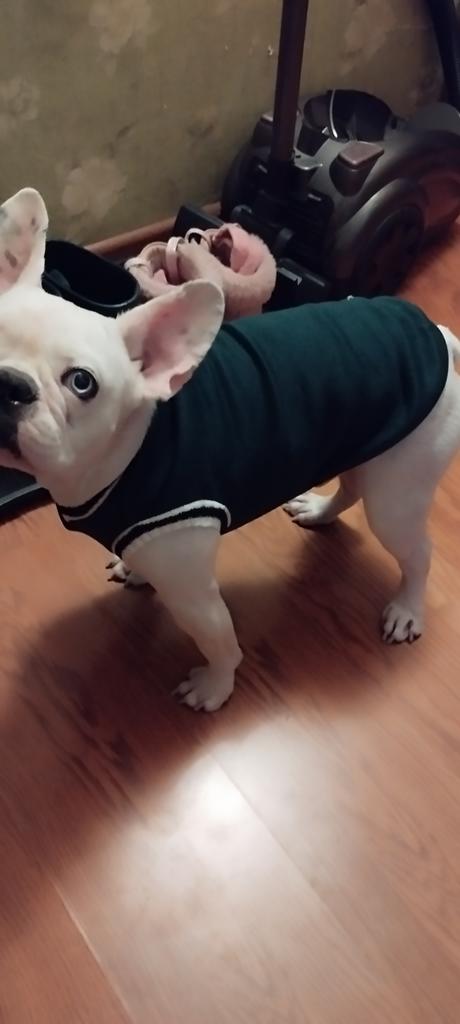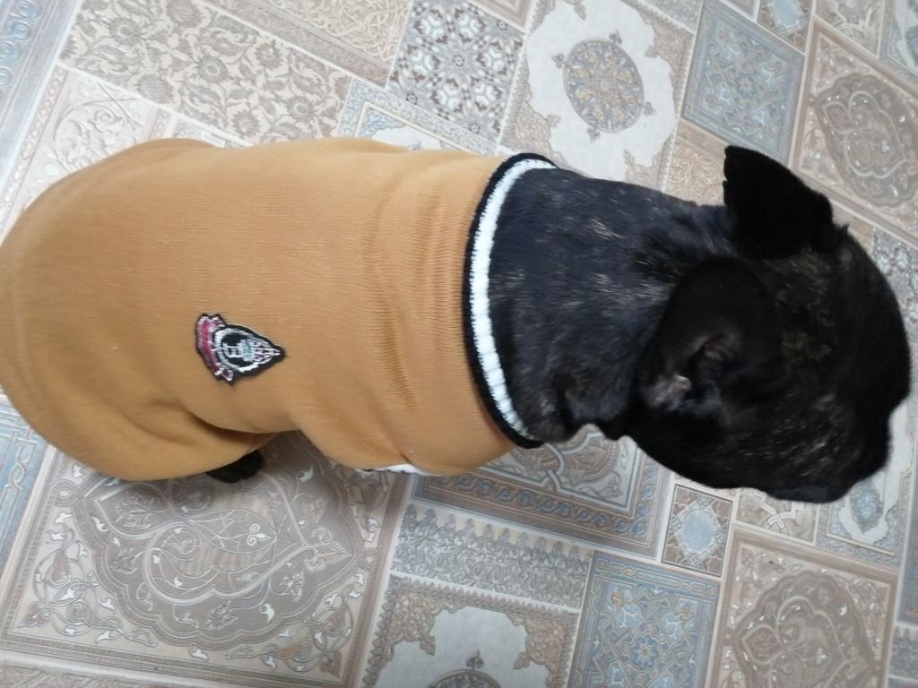 Objednáno pro buldoka o váze 13 kg. Svetr je výborné kvality, zateplený, ale musela jsem si objednat 3XL, abych trochu víc kryla záda. Díky výrobci a JOOM. Prodejce doporučuji.