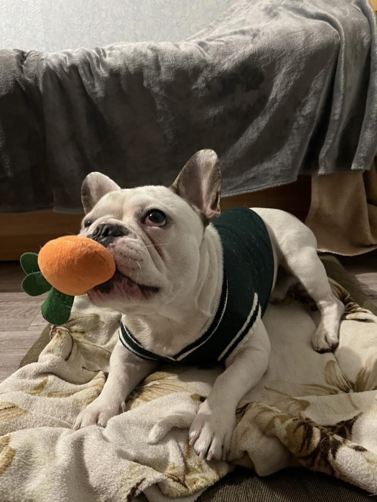 Koupeno pro francouzského buldočka, sedí perfektně.