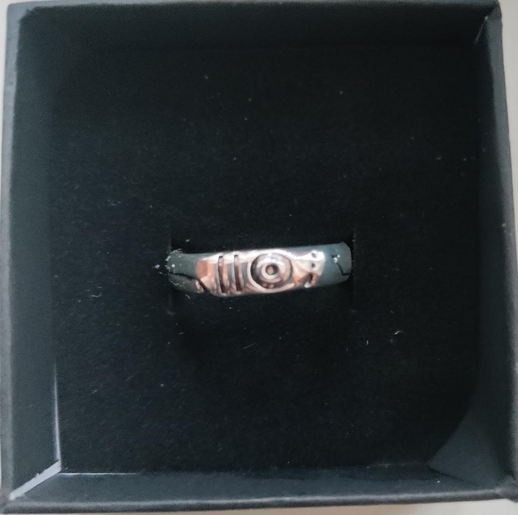Trochu hrubý řez na štítcích. Můj předchozí prsten byl úhlednější (moje krabička, jen pro fotku) Hlavní je ho nenamočit, protože jde o slitinu, která se rychle kazí.