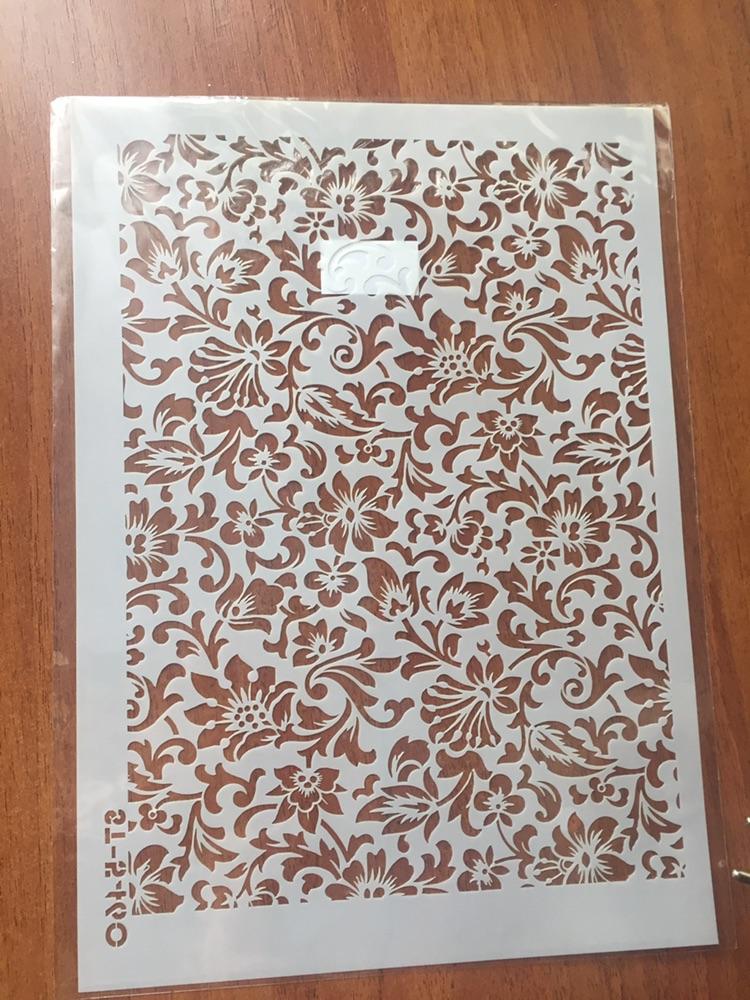 Šablona s krásným květinovým vzorem. Bohužel jsem nebyl schopen dosáhnout rozumného výsledku bez nějakého rozmazání. Je ve velikosti A4. Vlnuje se enormně a nemá příliš stabilní kvalitu.