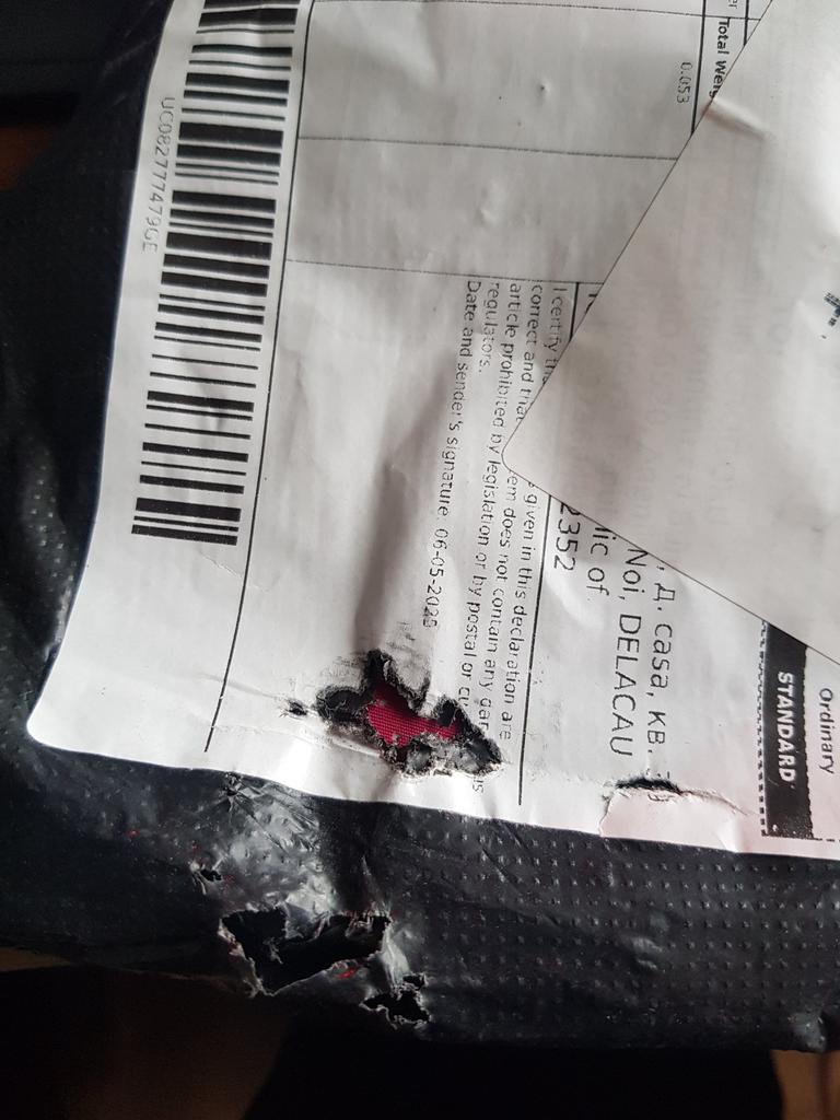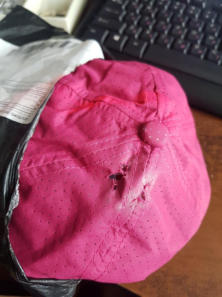 Kšiltovka je potrhaná, s balíkem je třeba zacházet opatrně.