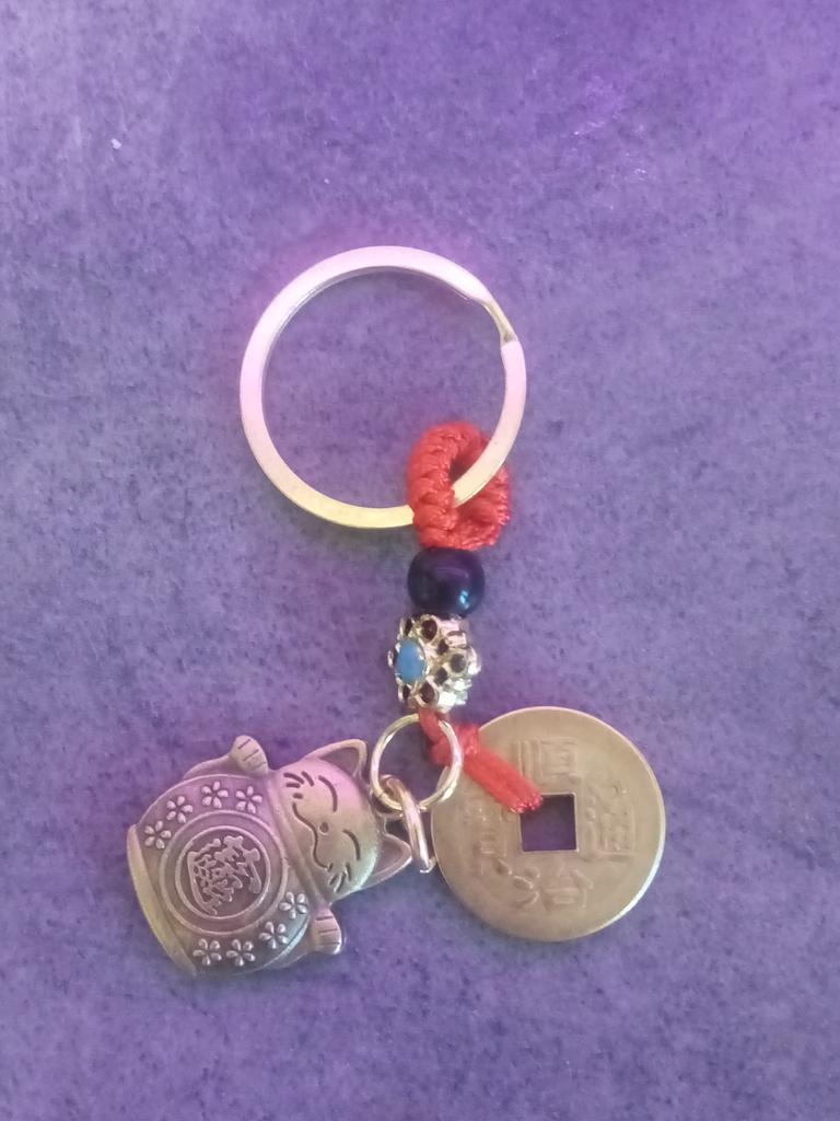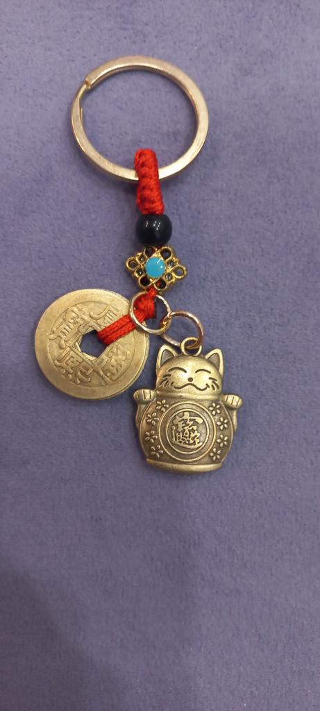 1ks Lucky Cat Five Emperors Mince Mosazný přívěsek na klíče Roztomilé zvíře ručně vyráběné šperky