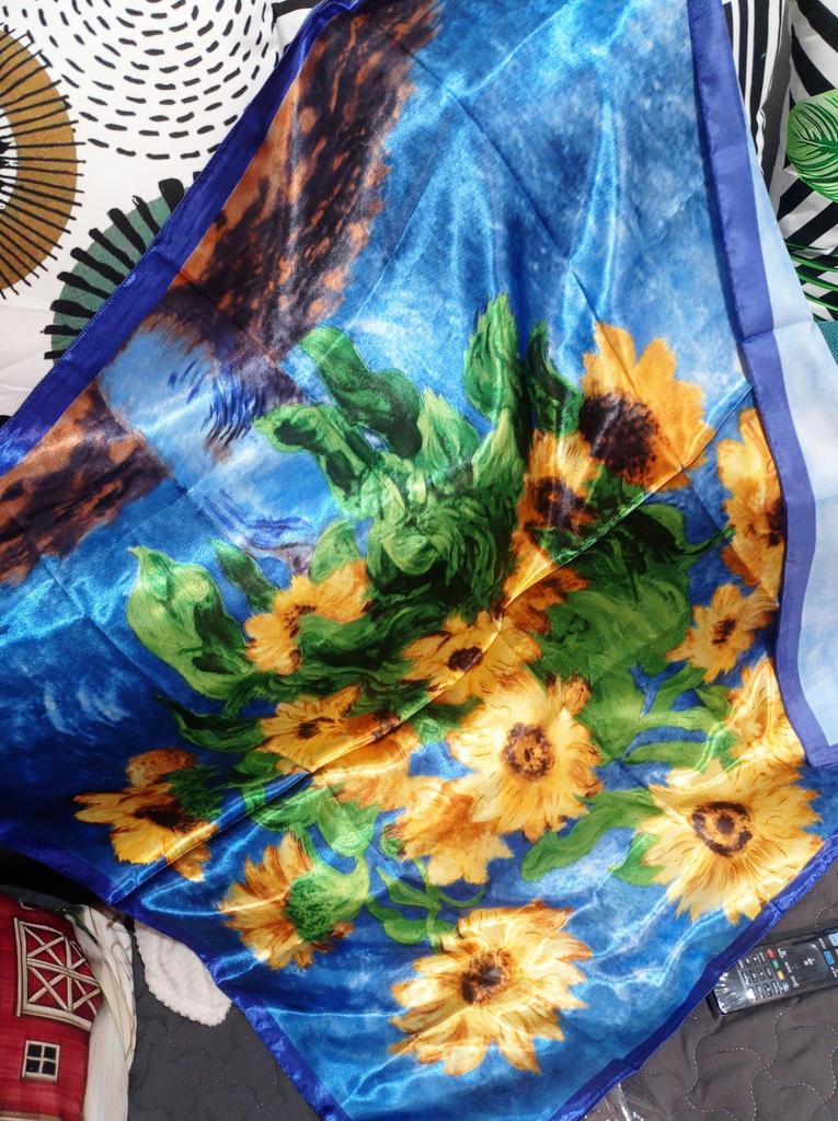 Šátek je moc dobrý. Hedvábné, ale ne kluzké, barvy jsou jasné.