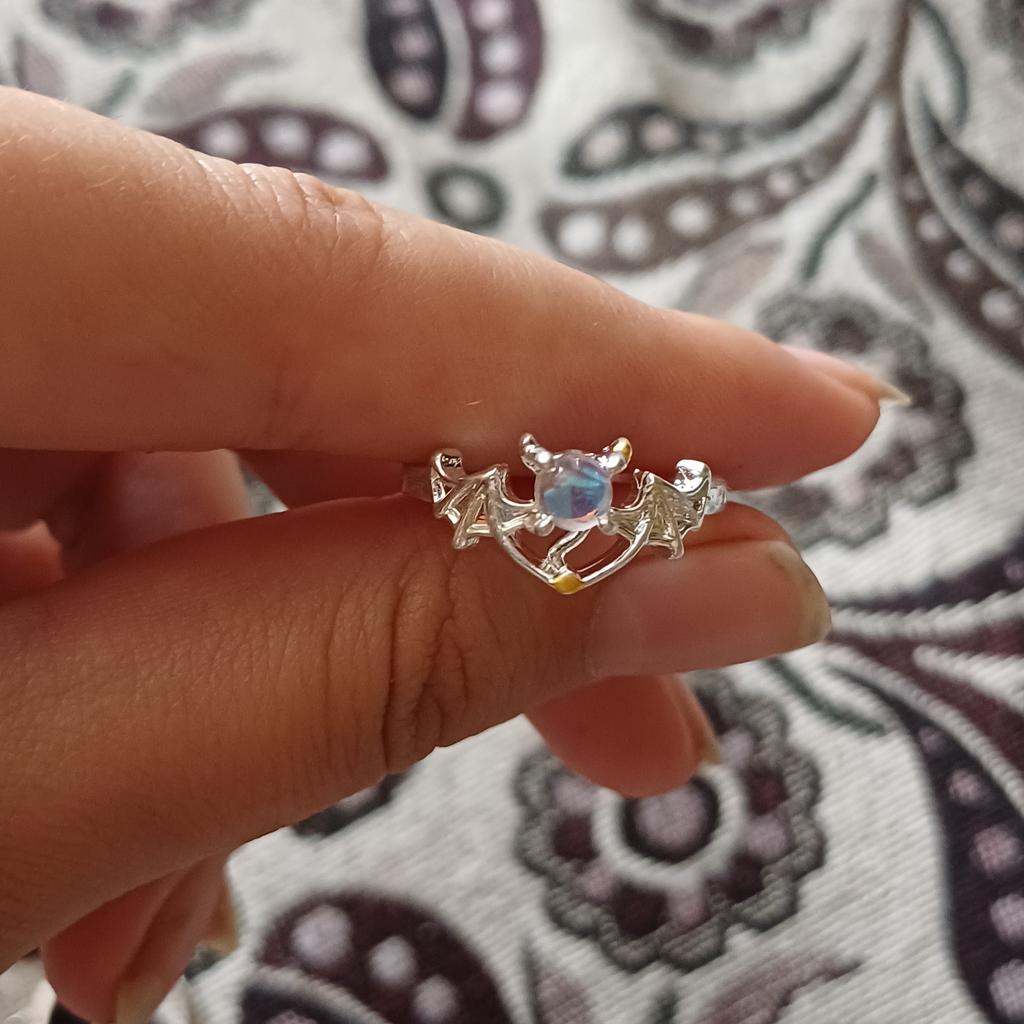 Romantický pár prstenů Angel and Demon Wings pro ženy Goth Fashion Moonstone Nastavitelný otevírací prst Pánský prsten Party šperky