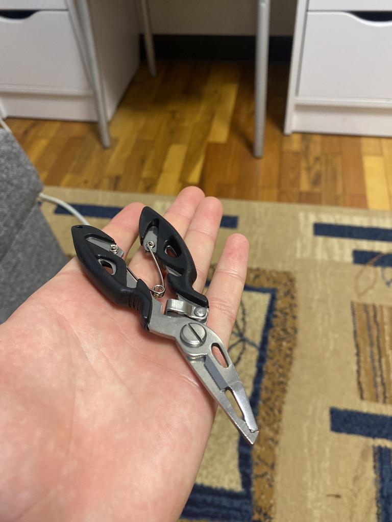 Kleště Nůžky na rybářské návazce 🎣. Velmi kvalitní, velmi ostrý a dobře se řeže, malý a dobře se s ním pracuje.Dobře řeže: monofil, multitufilamentní textilie a kov.Dodává se s teleskopickou pružinou pro připevnění na opasek, takže ji nemůžete ztratit. Pozor, multifilament z kovových drátků je střižen pouze ve výřezu na začátku čepelí.(obrázek 4) Lze stříhat drát do max. 1mm, ale v žádném případě měkký, neželezný, tedy hliník a měď ocelový drát.Objednával jsem mnohokrát (lze je použít i jako vytahovač háčků a syntetická návnada z tlamy dravých ryb při lovu na ryby).Doporučuji,běžná věc na rybaření 🎣💪