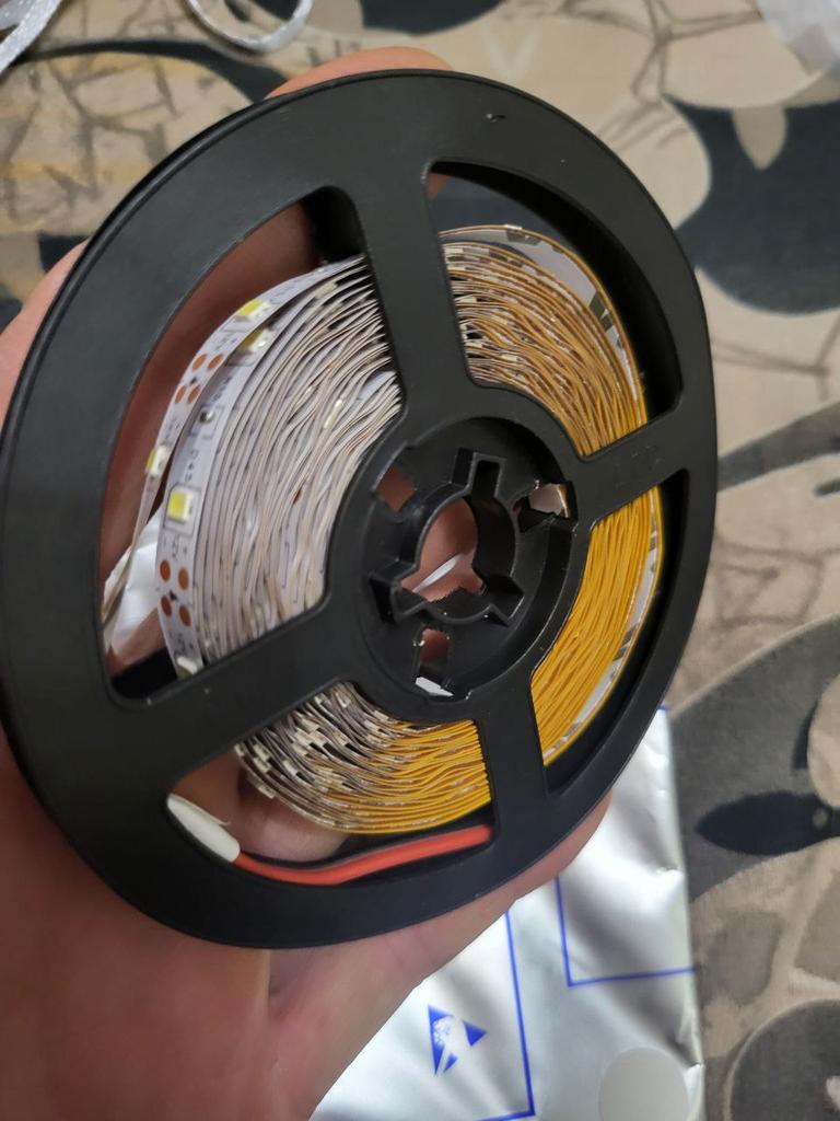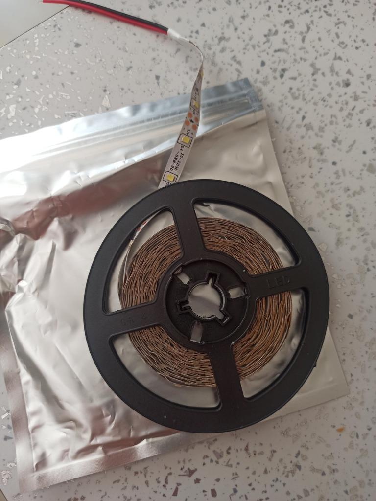 Pracovní, světlý, ale ne 5m, ale 4,90. 10 cm kabeláže. Mohl jsem dráty připájet sám.