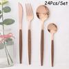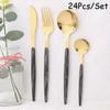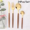 24 ks Černozlatá sada příborů s dřevěnou rukojetí Nerezová sada nádobí Nůž Vidlička Kávová Malé lžičky Stolní nádobí Kuchyňské Stříbrné nádobí